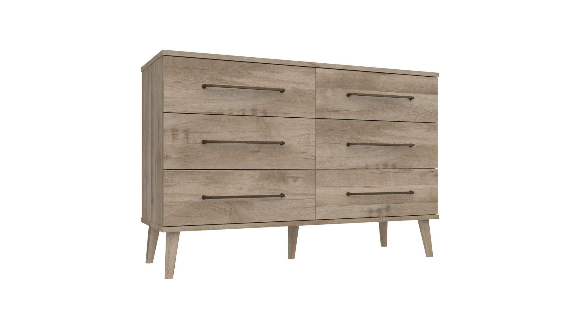 Add a touch of personality to your bedroom with Alpen - available in 2 stylish colours. The antique handle and colour-matched feet add a designer touch, while the 8mm drawer bases and easy glide metal runners ensure durable and convenient storage. Linen look details complete this quirky and stylish piece.