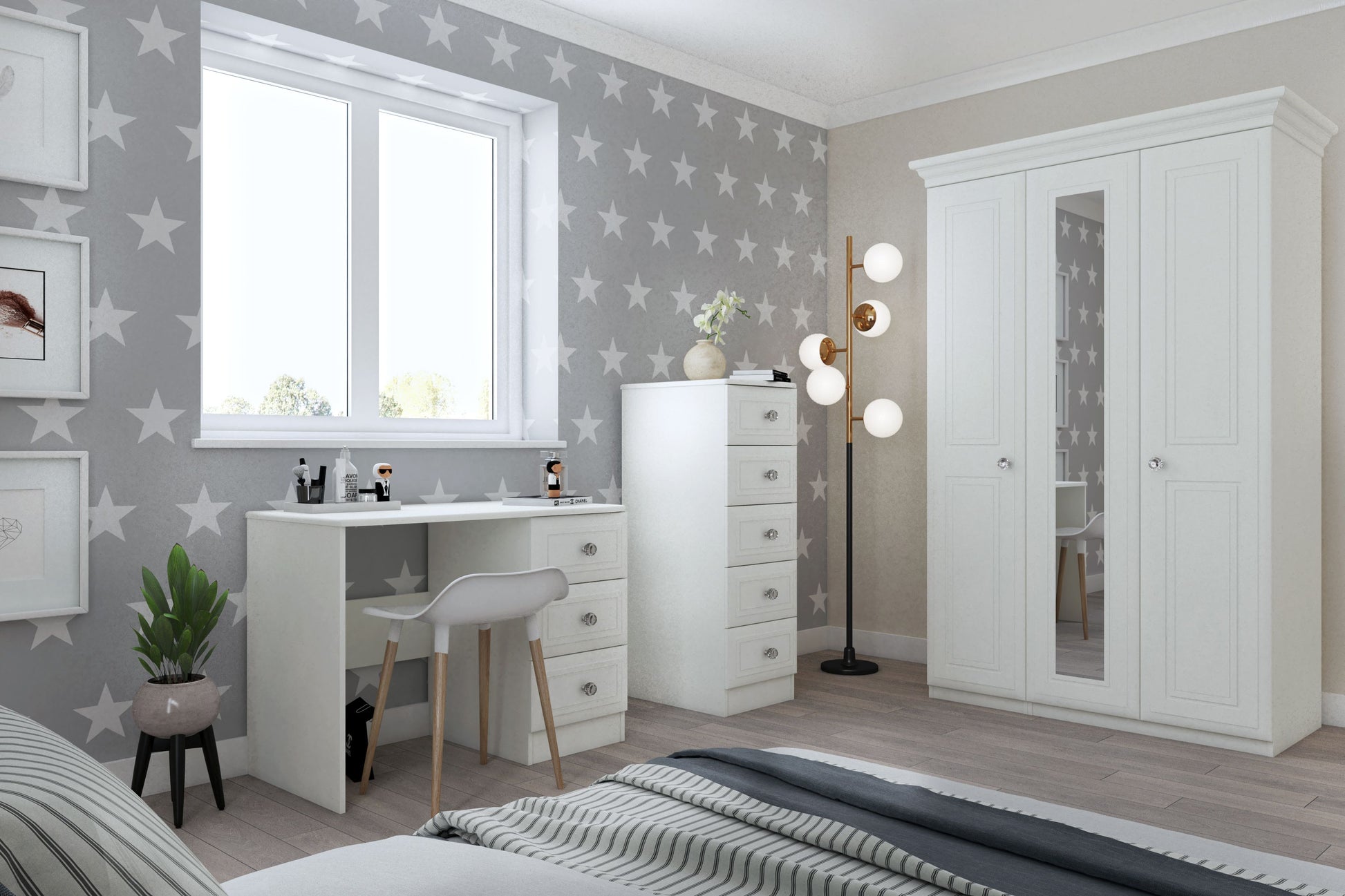 The Aspen collection offers 3 colour options and a distinctive J Pull handle for a modern touch. With its inset design and stylish feet, this furniture exudes elegance. The heavy duty 8mm drawer bases and easy glide metal runners provide durability and convenience