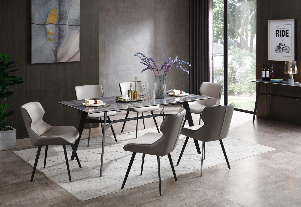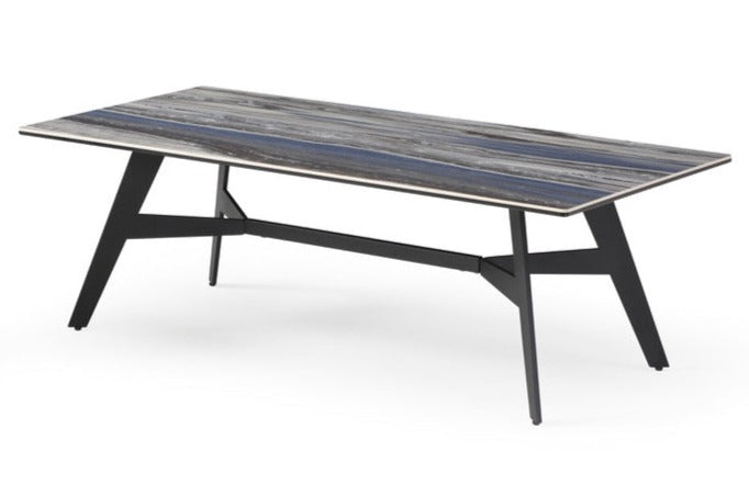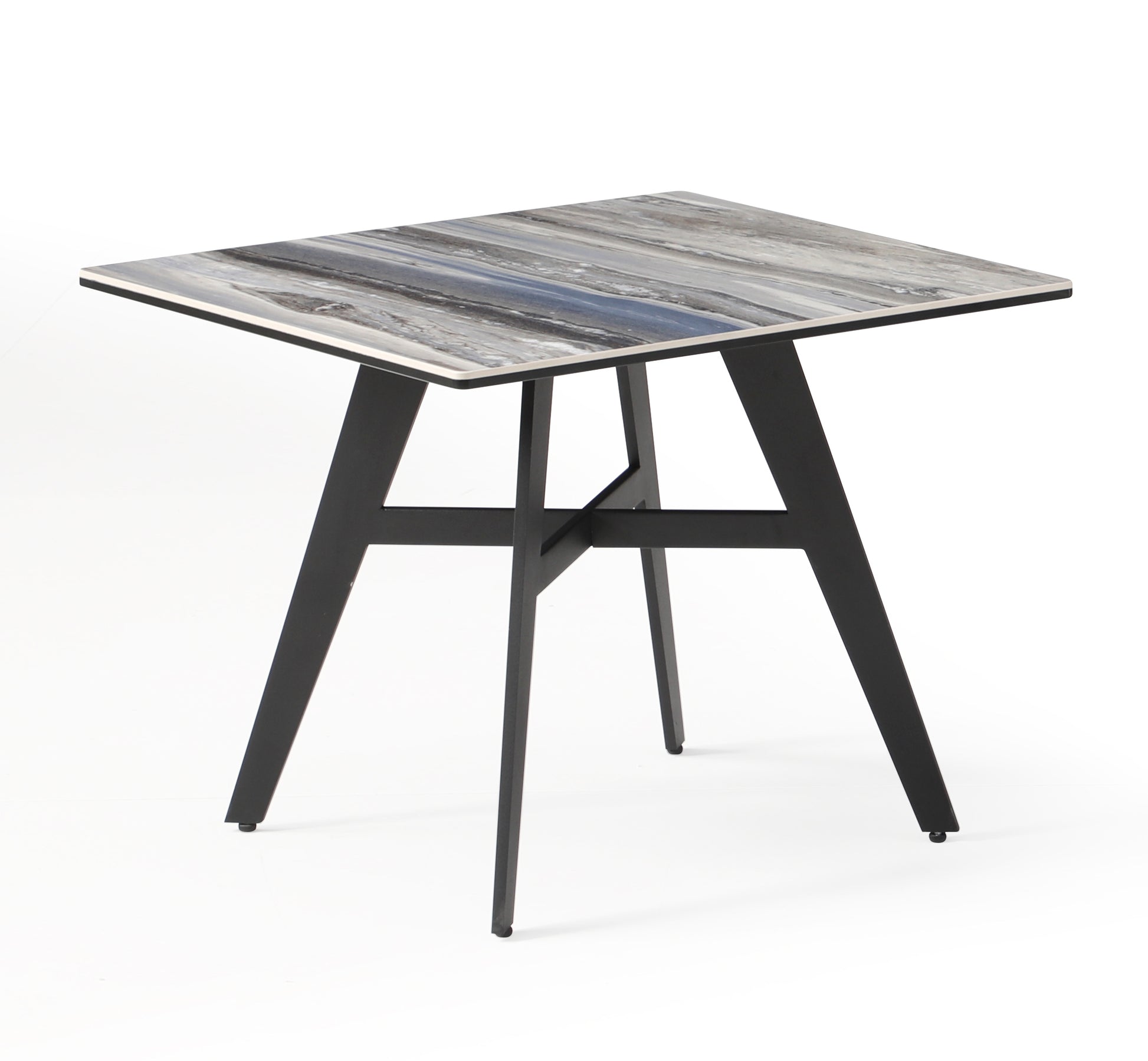 Upgrade your Living & Dining experience with our Blue Mist Collection. The ceramic top laminated on tempered glass provides durability and a unique touch. The sleek black painted metal legs add a modern and stylish look to your dining & living space.