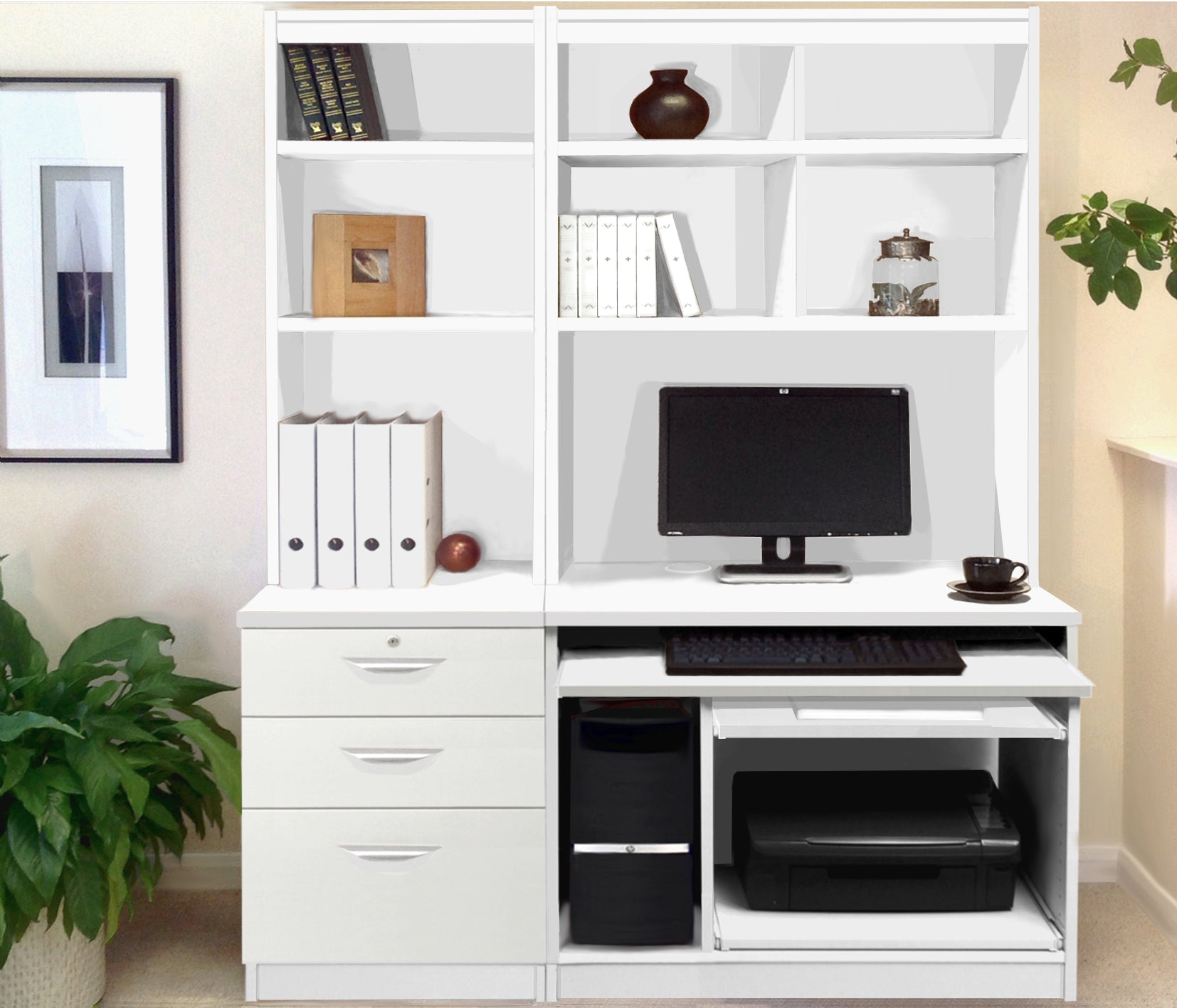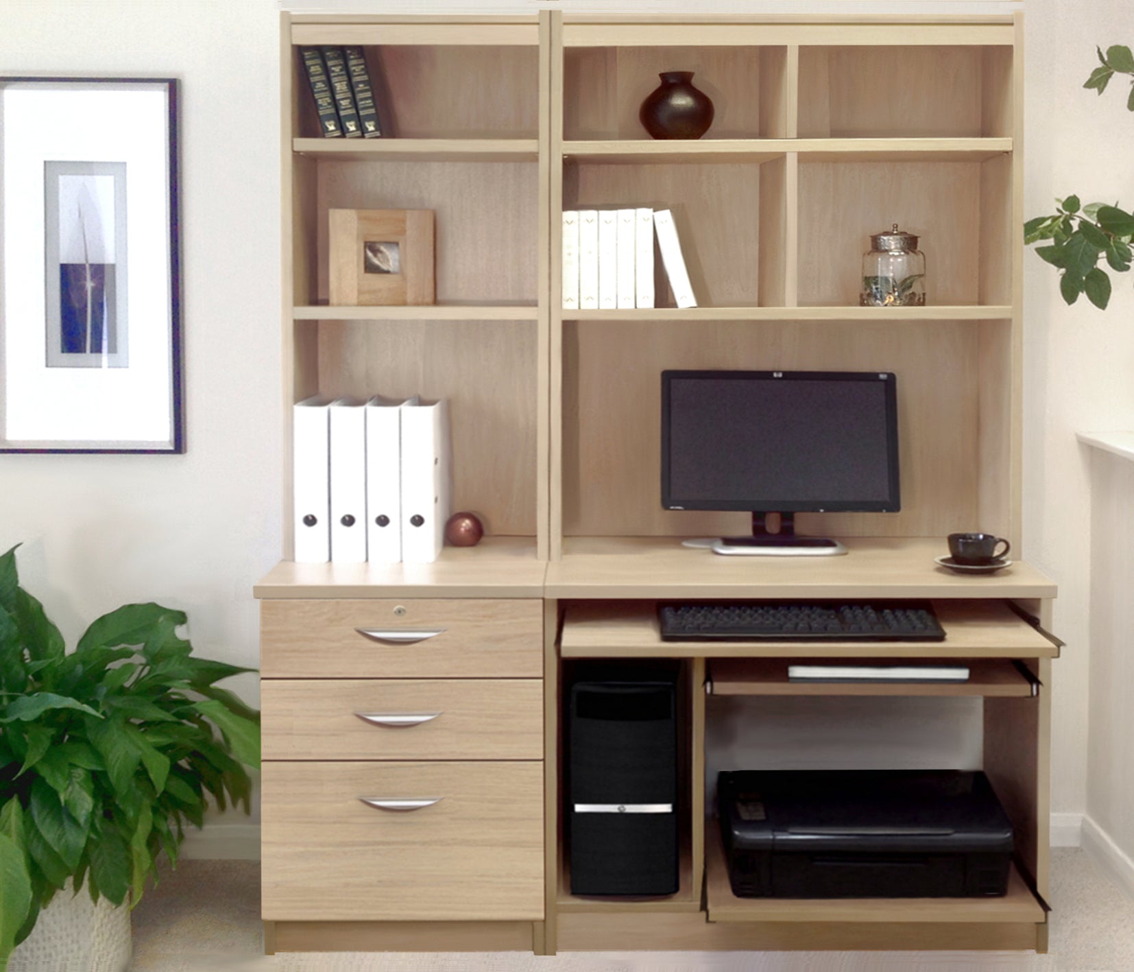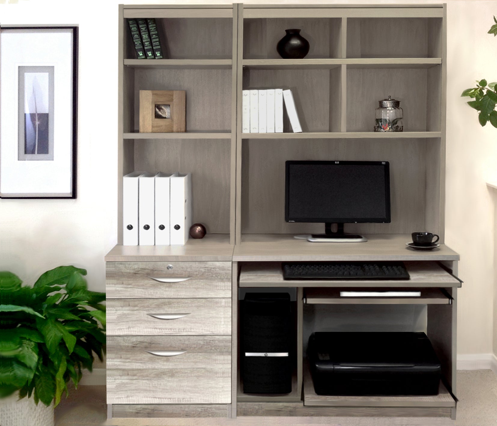 Create a productive and stylish home office with our Computer Work Station and 3 Drawer Unit/Filing Cabinet. Stay organized with integrated filing systems and useful storage. Simplify your work and elevate your space with refined elegant lines. Transform your home into an efficient and inviting working environment.