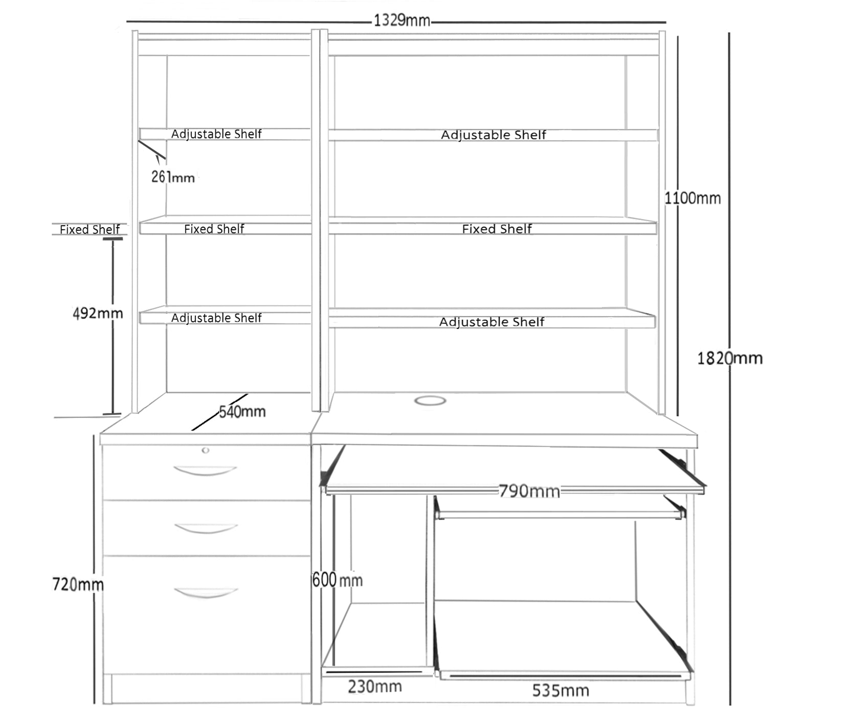 Hutches Fixed Shelf H49cm (clearance from working surface)