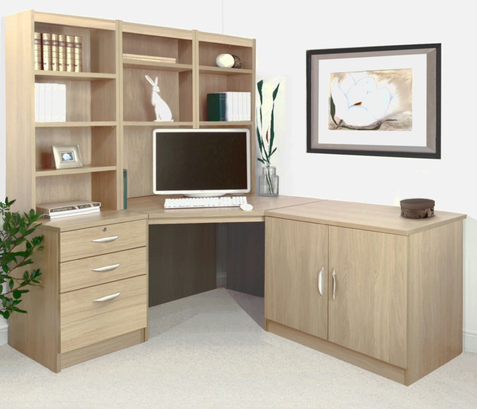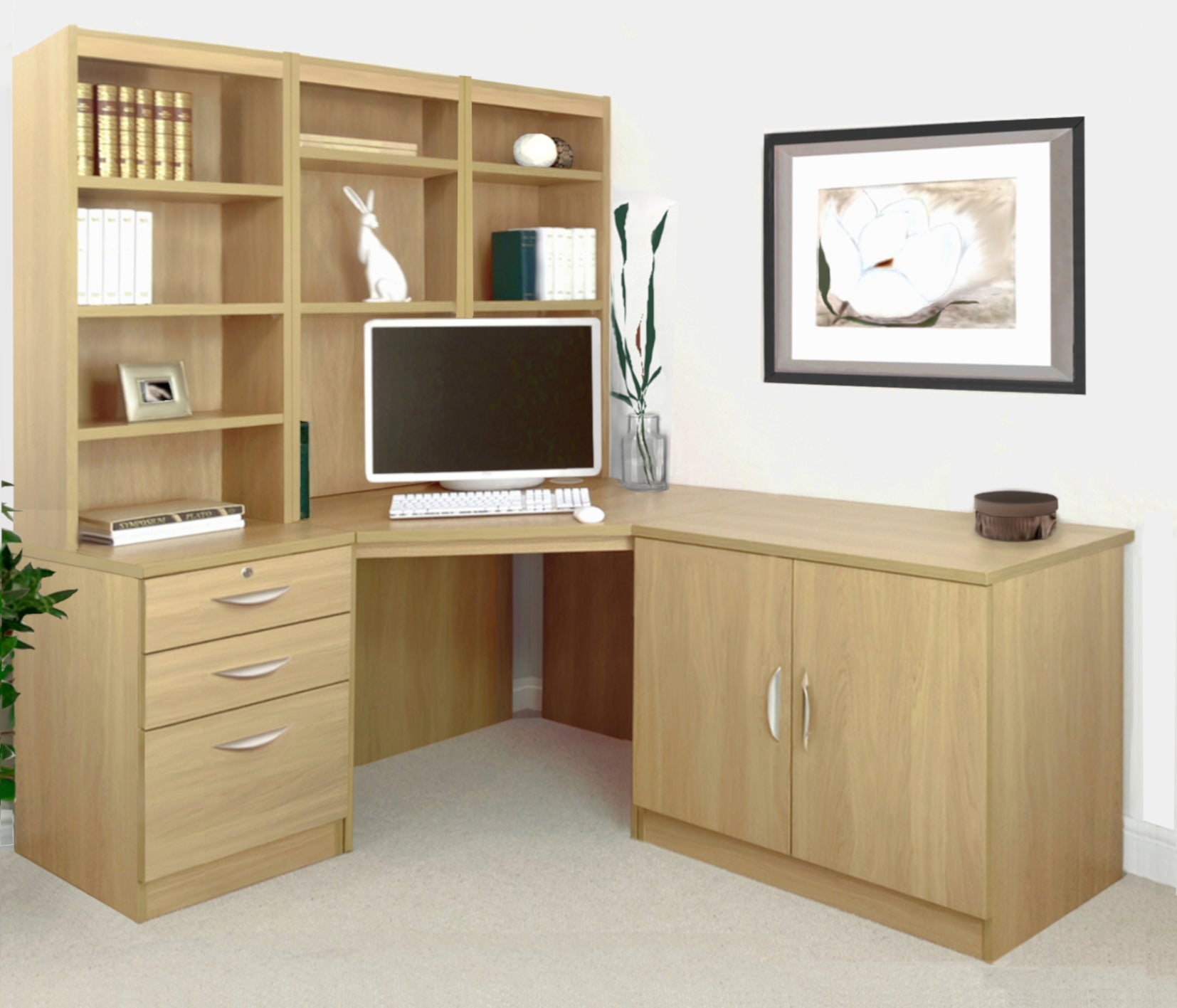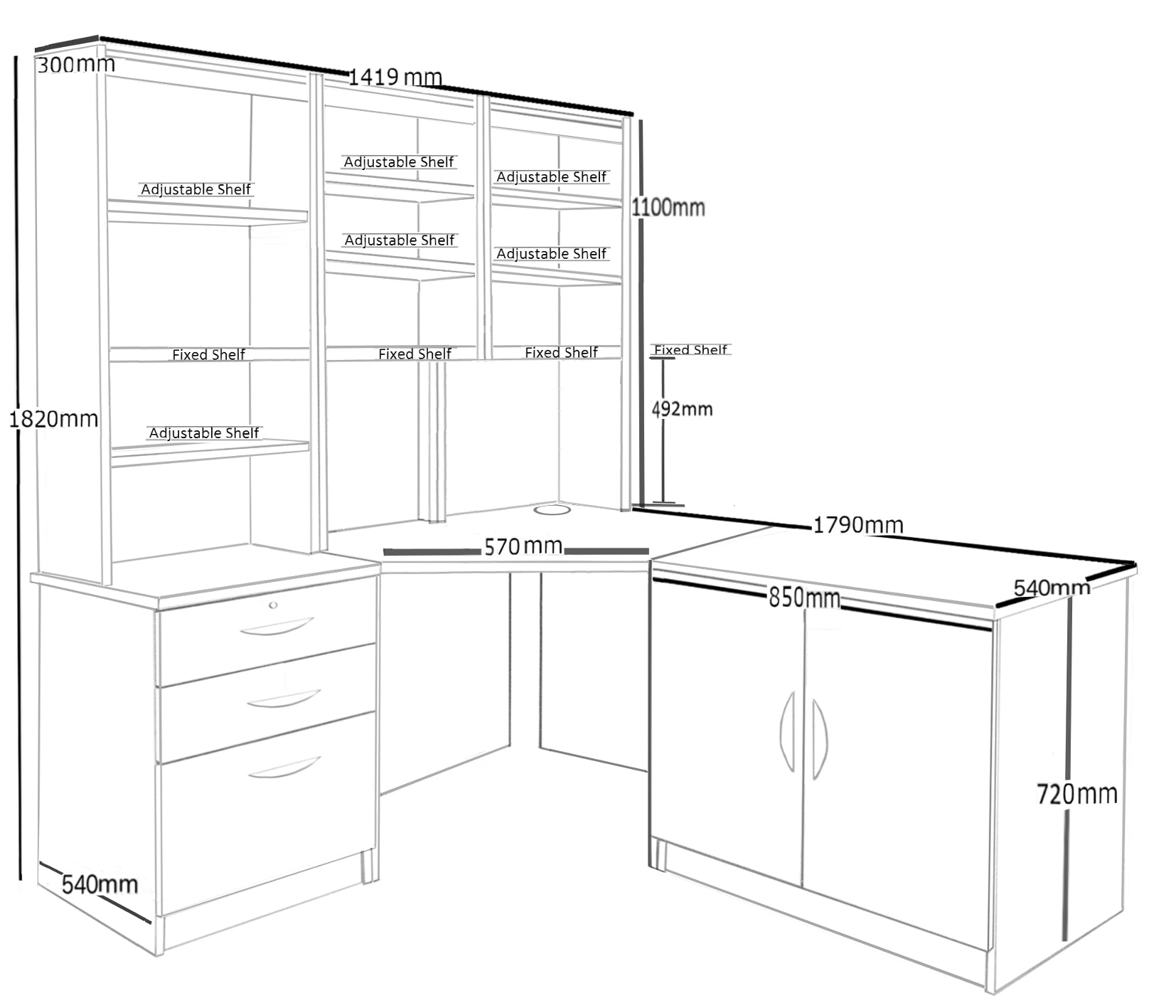 Home Office Corner Desk, Cupboard & Drawer Units with Hutch Bookcases