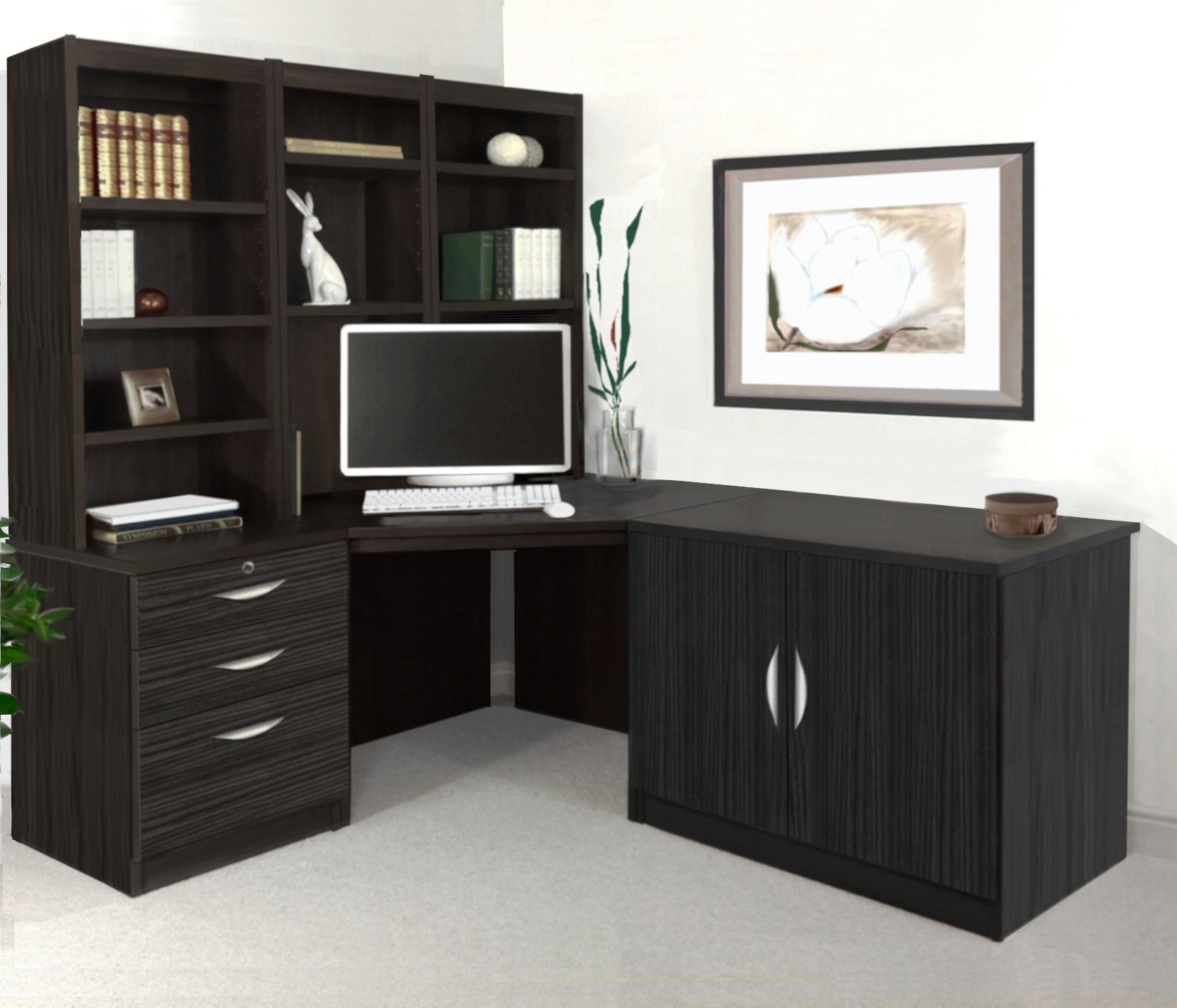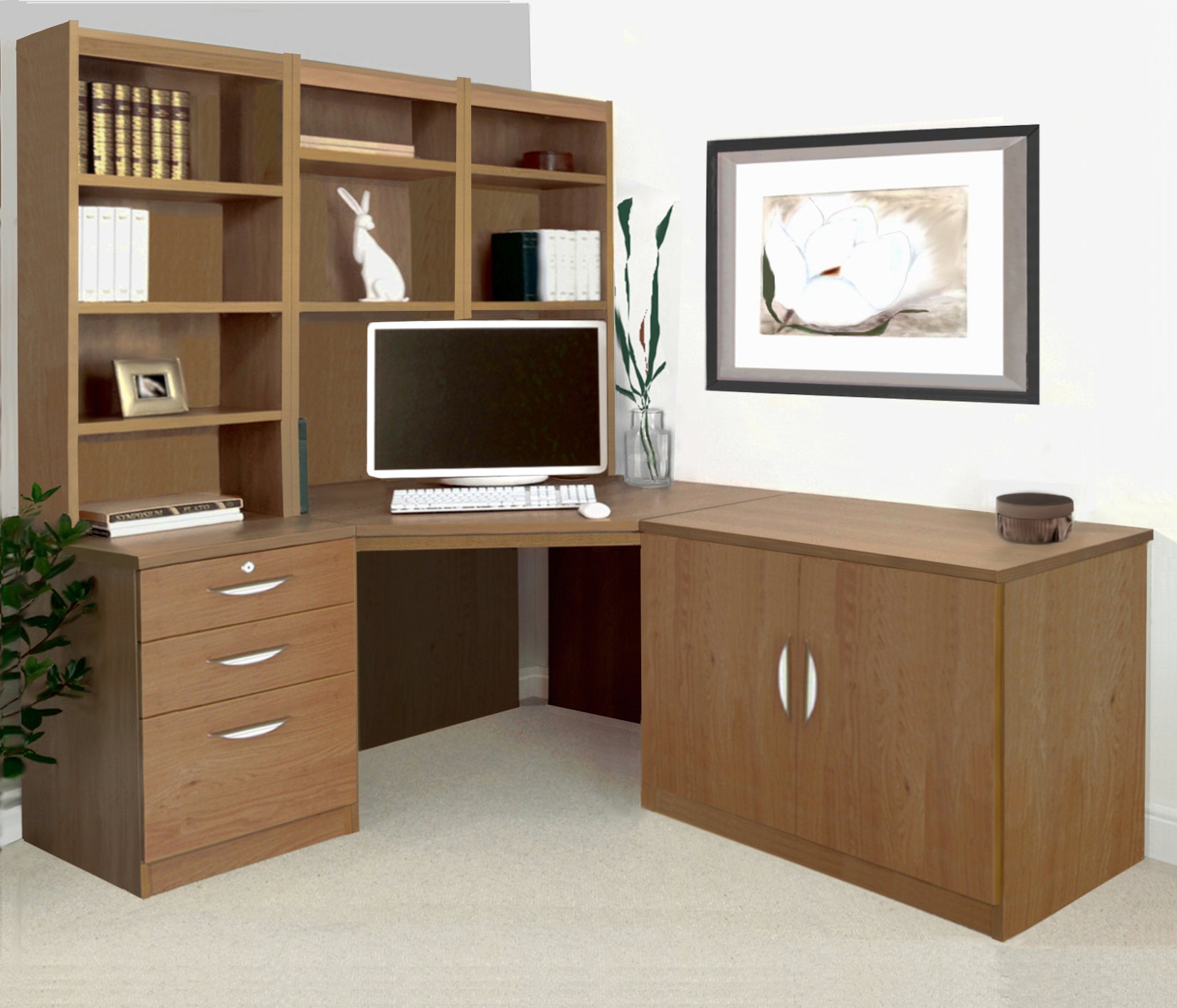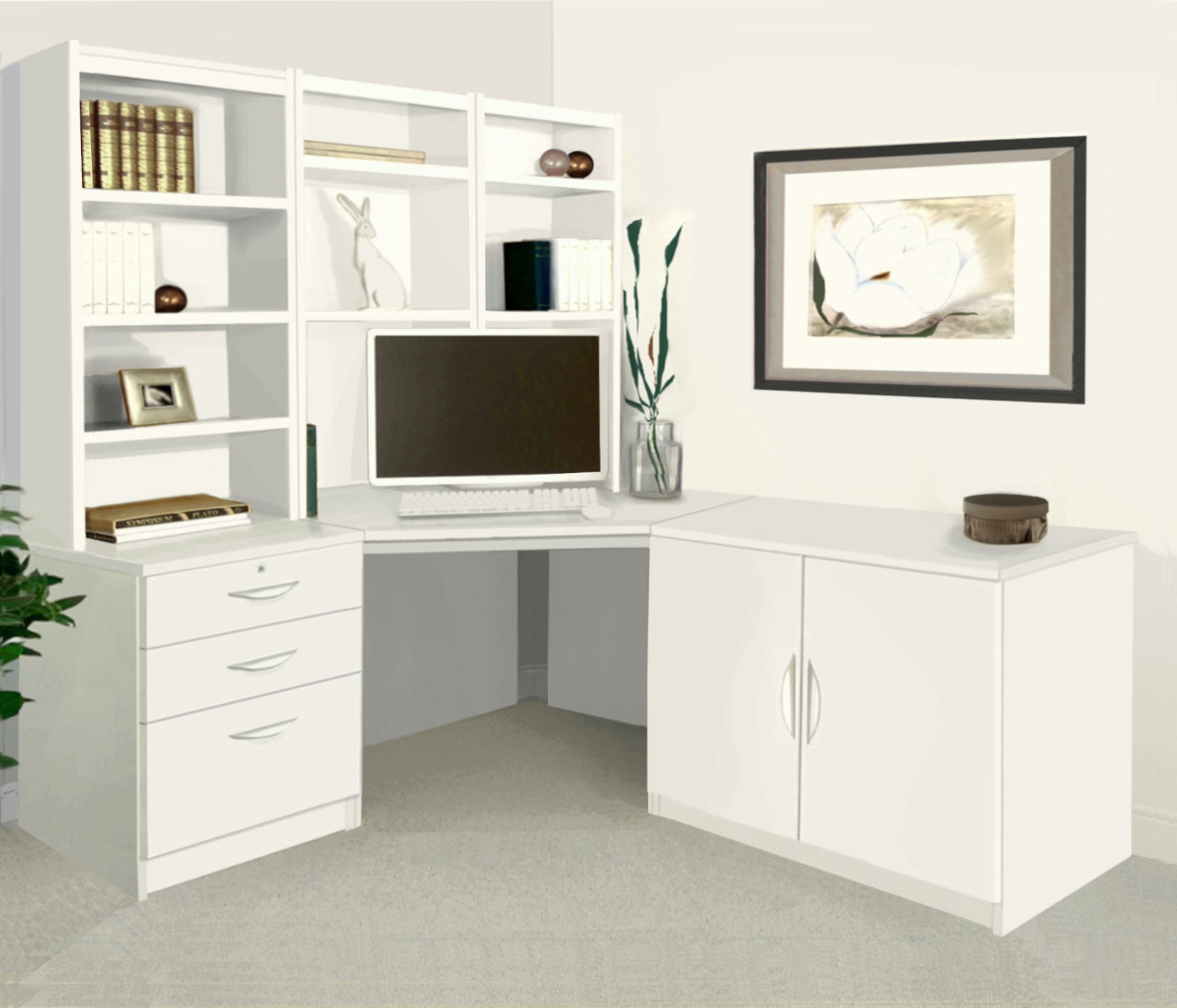 Home Office Corner Desk, Cupboard & Drawer Units with Hutch Bookcases