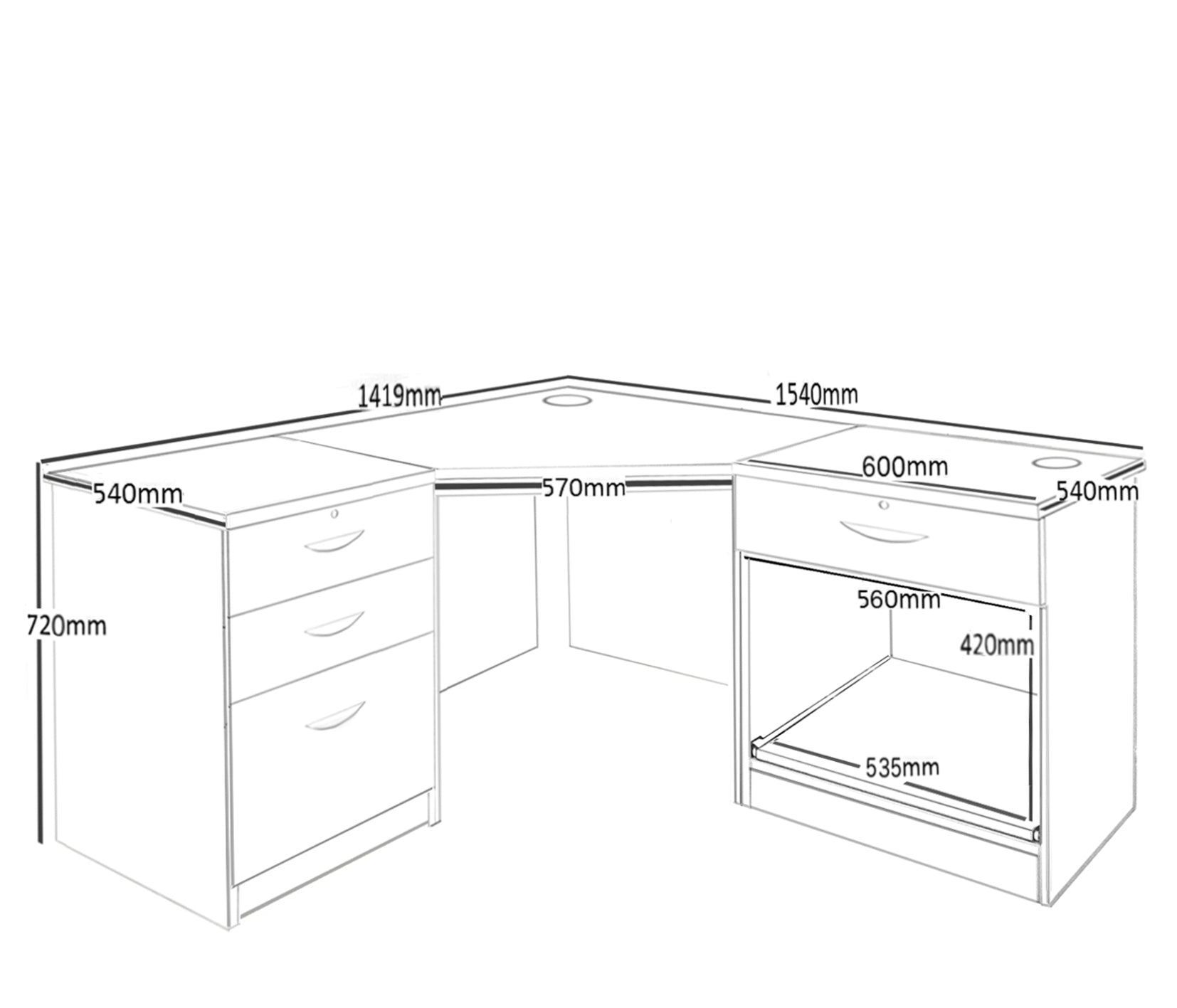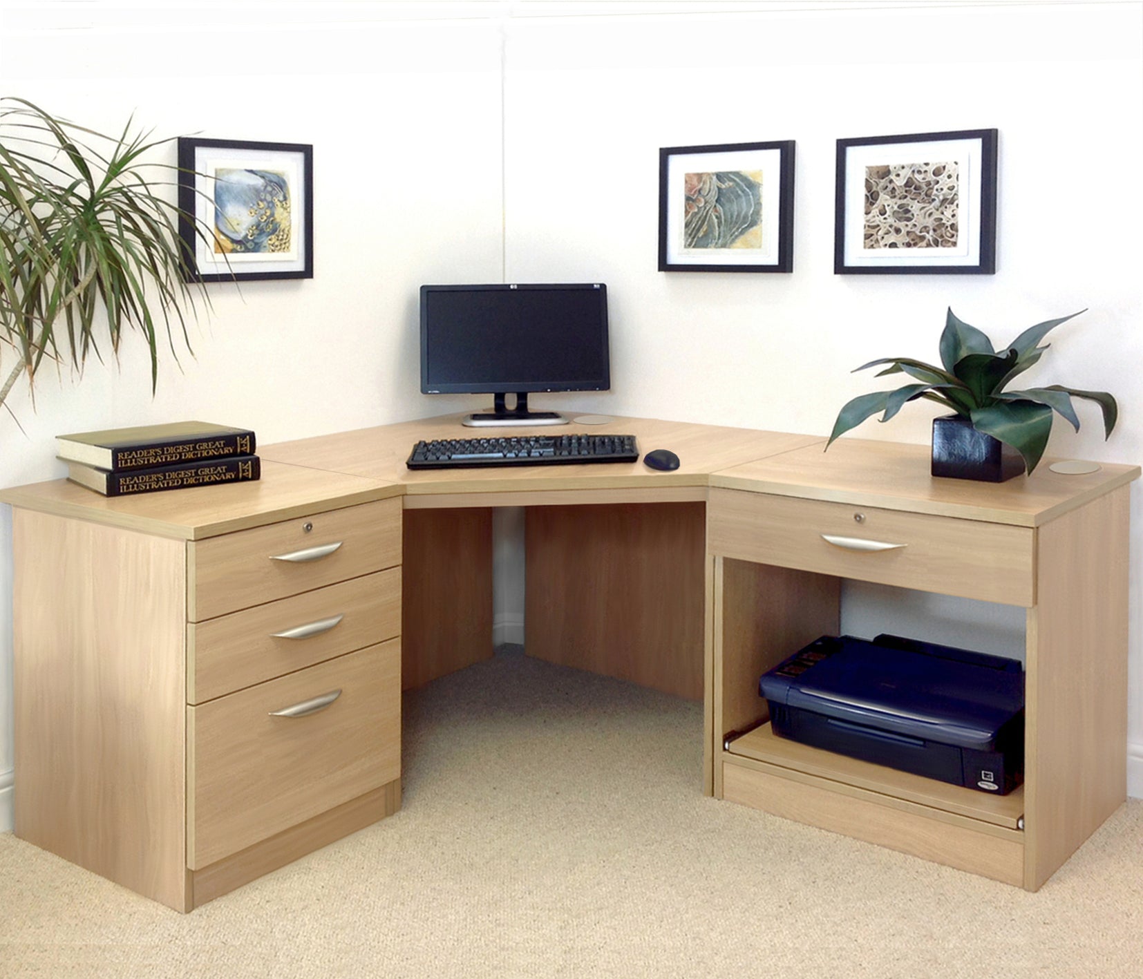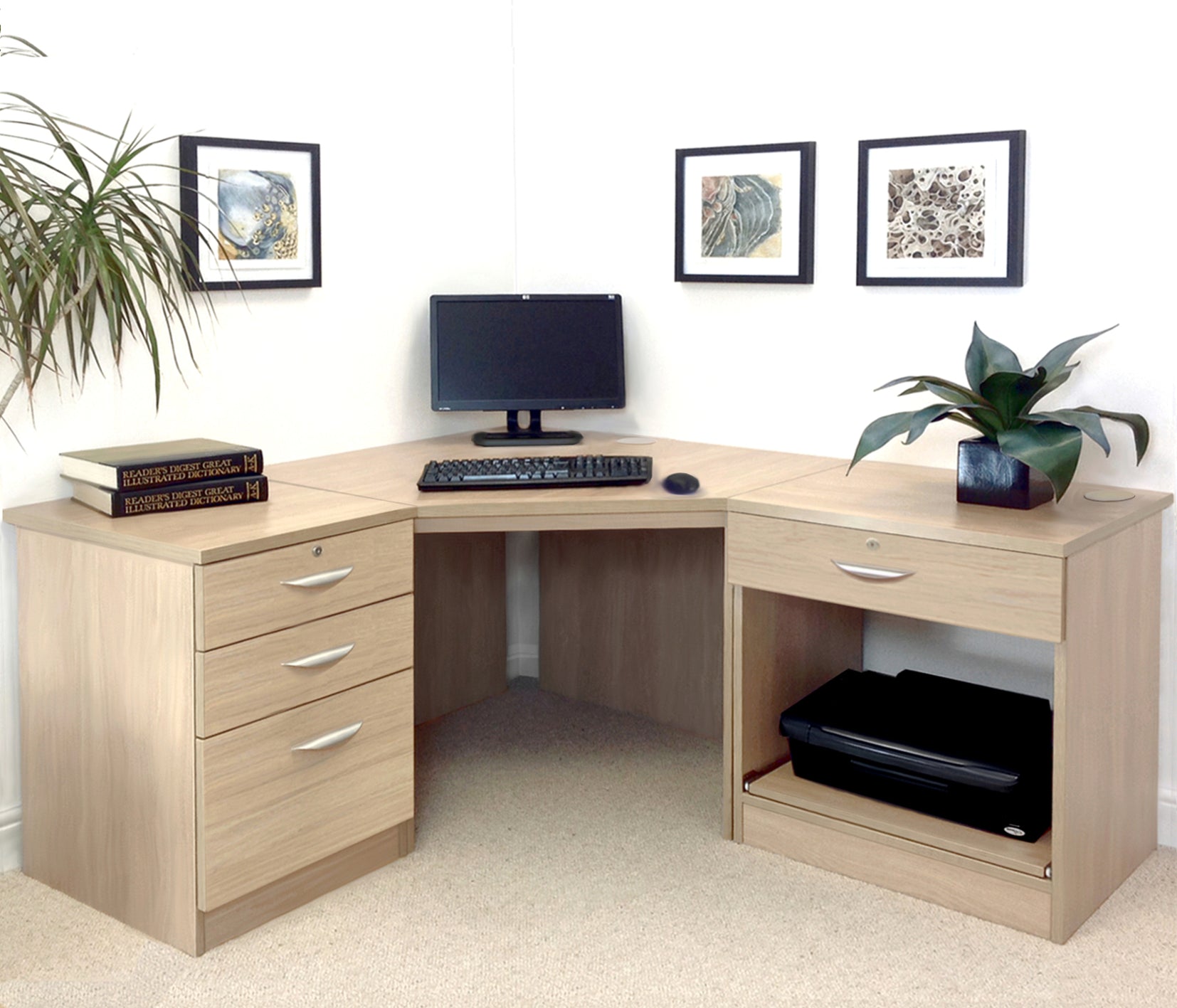 Home Office Corner Desk with Printer and Drawer Units