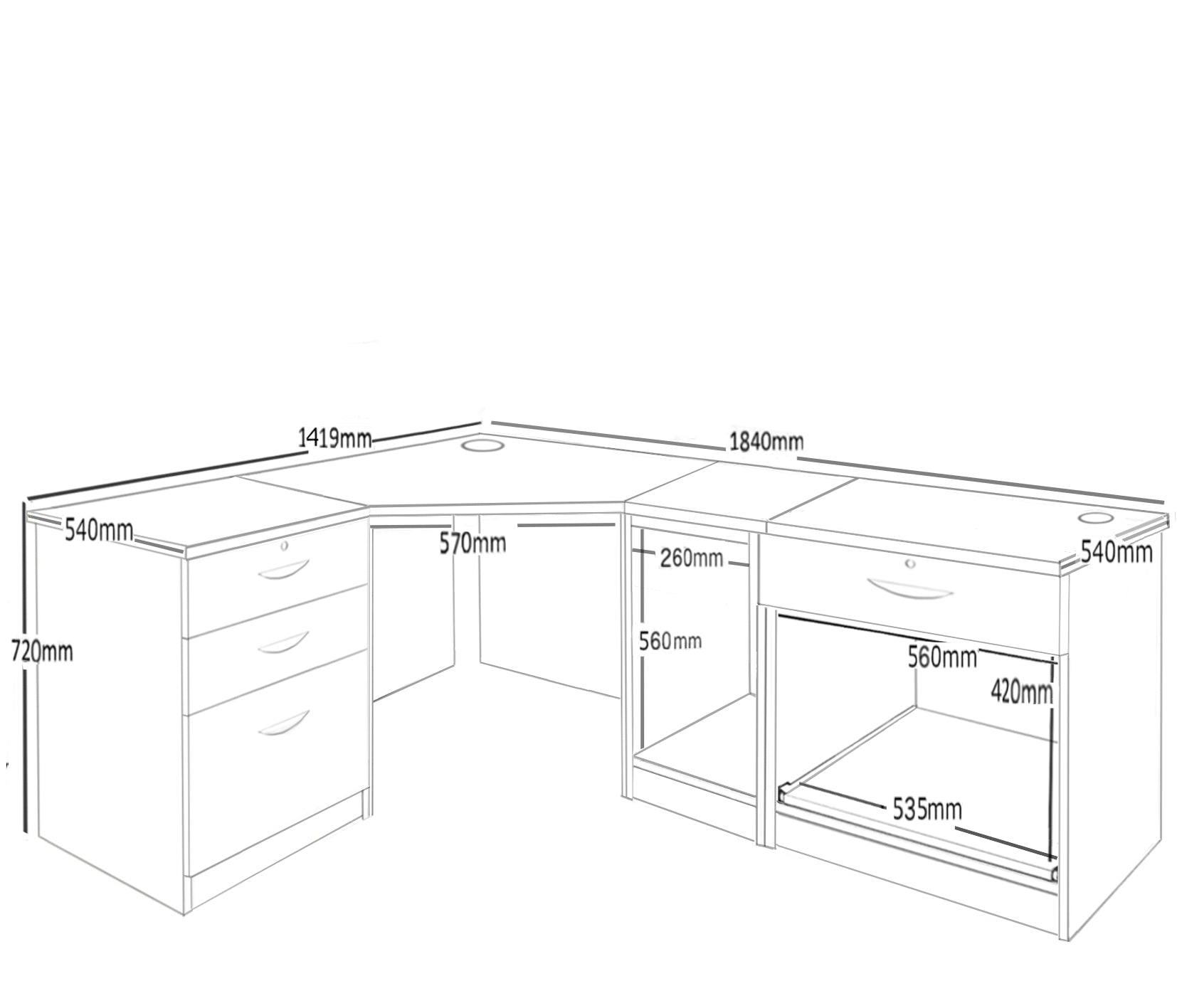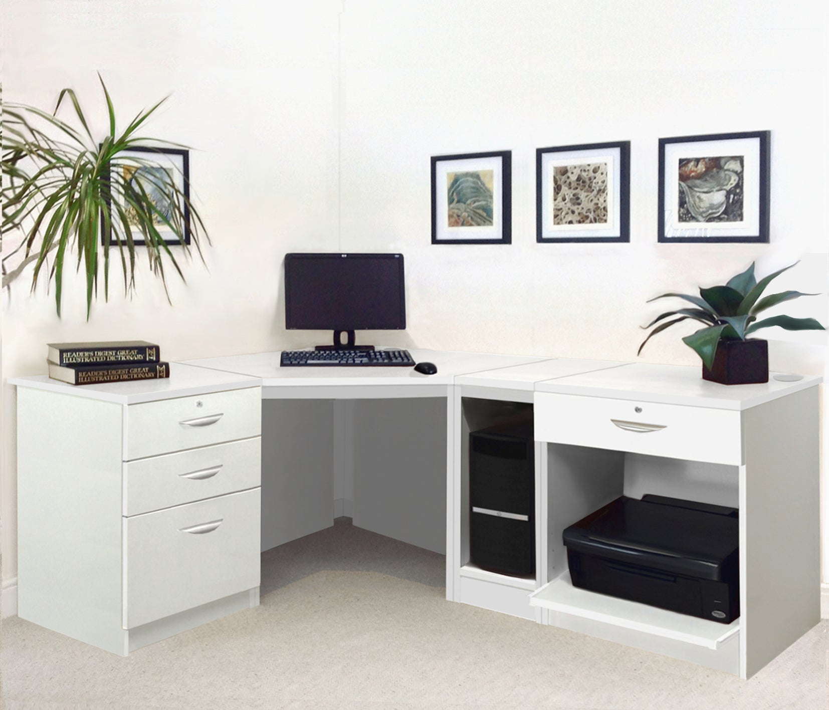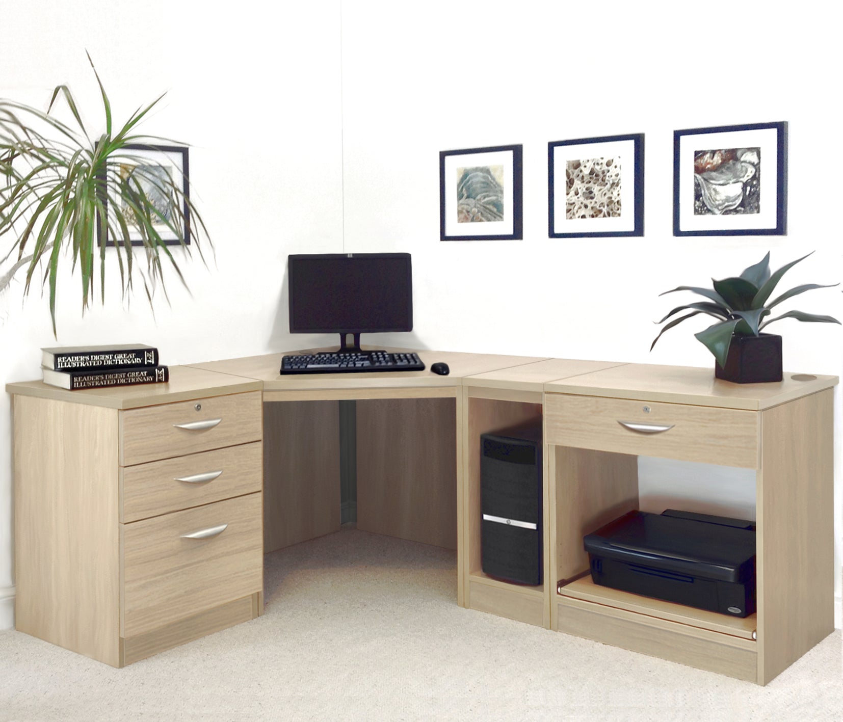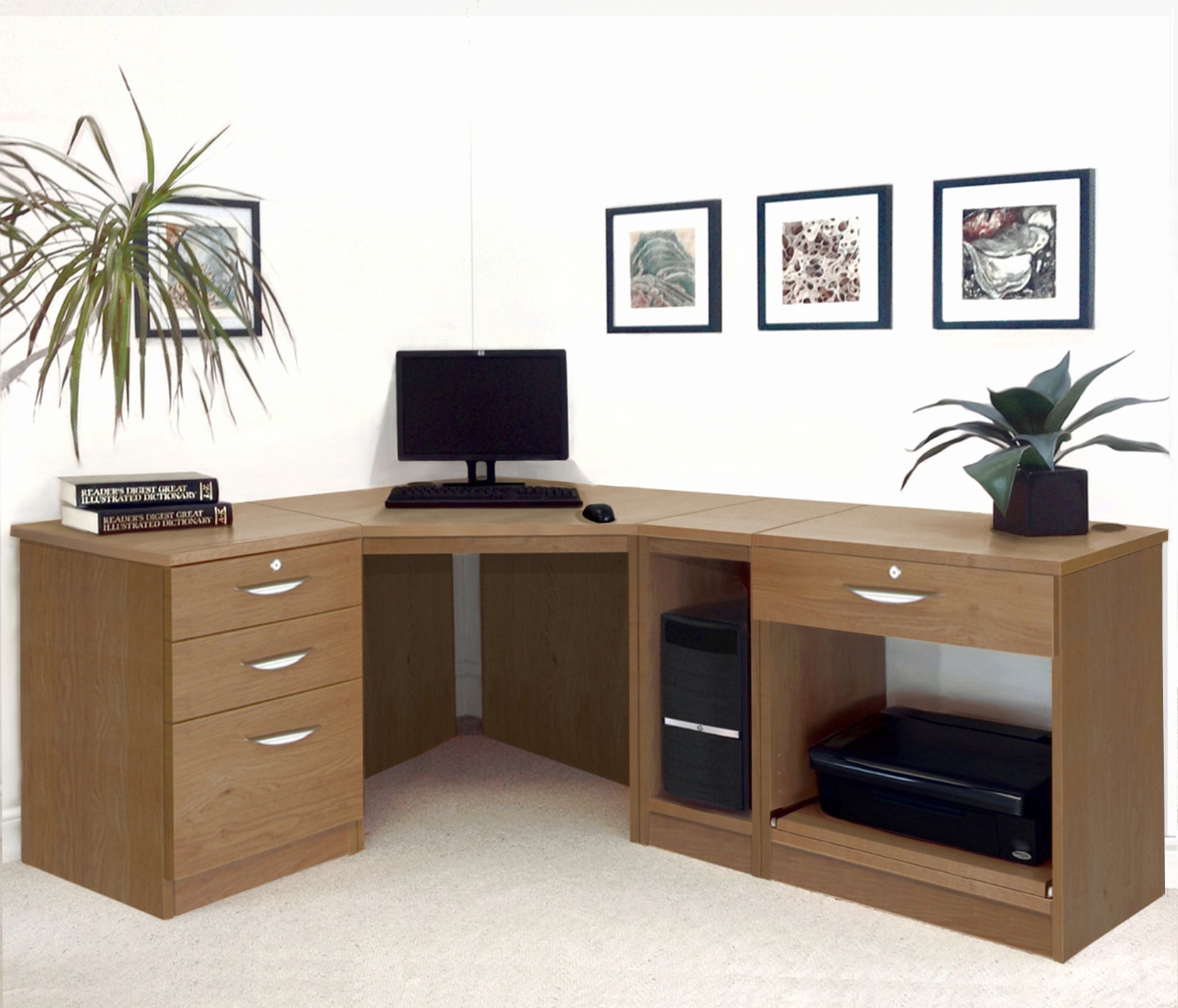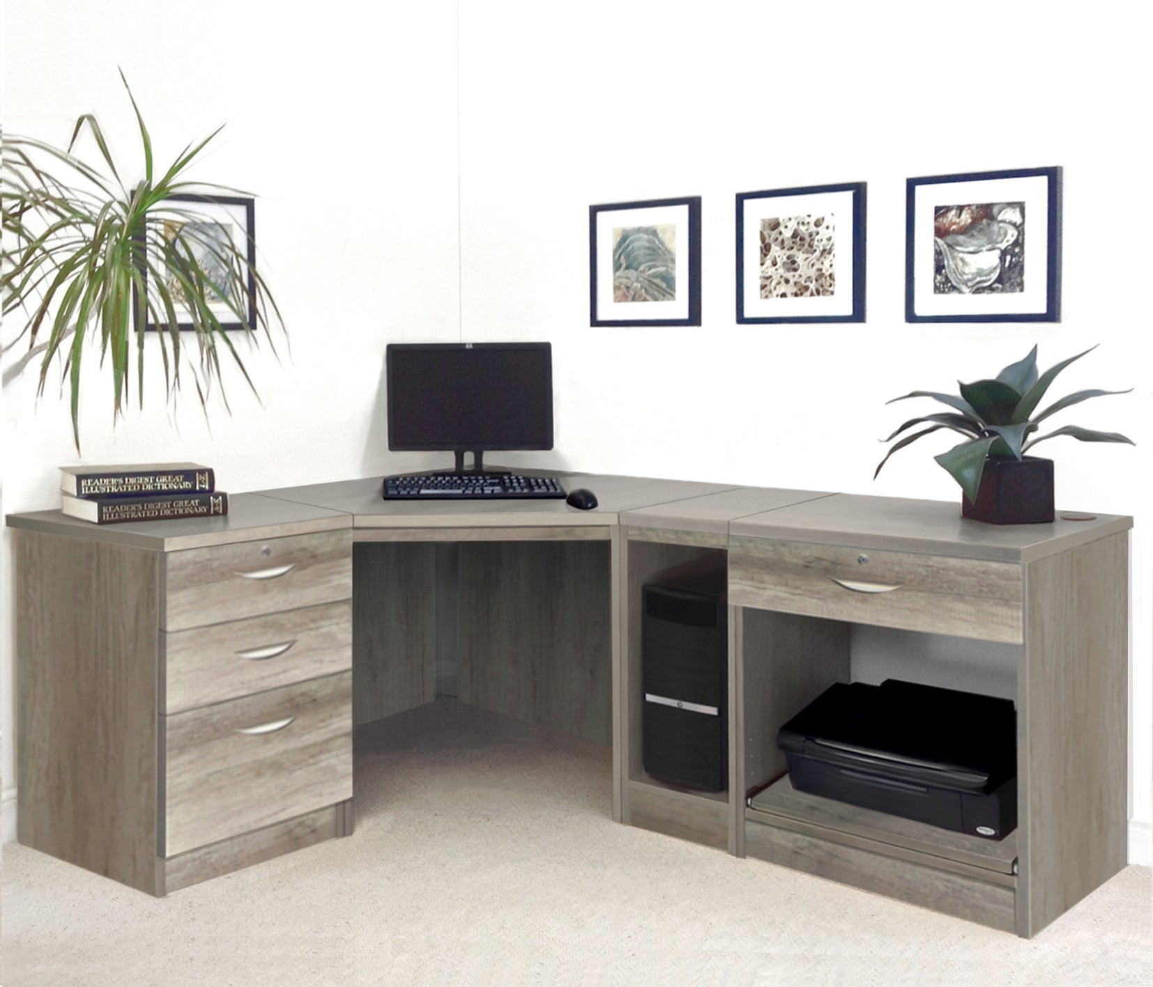 Home Office Corner Desk with Printer, Computer & Drawer Units