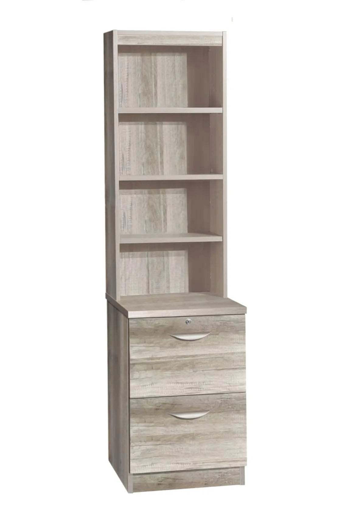 Home Office Desk Height 2 Drawer Filing Cabinet with Hutch Bookcase