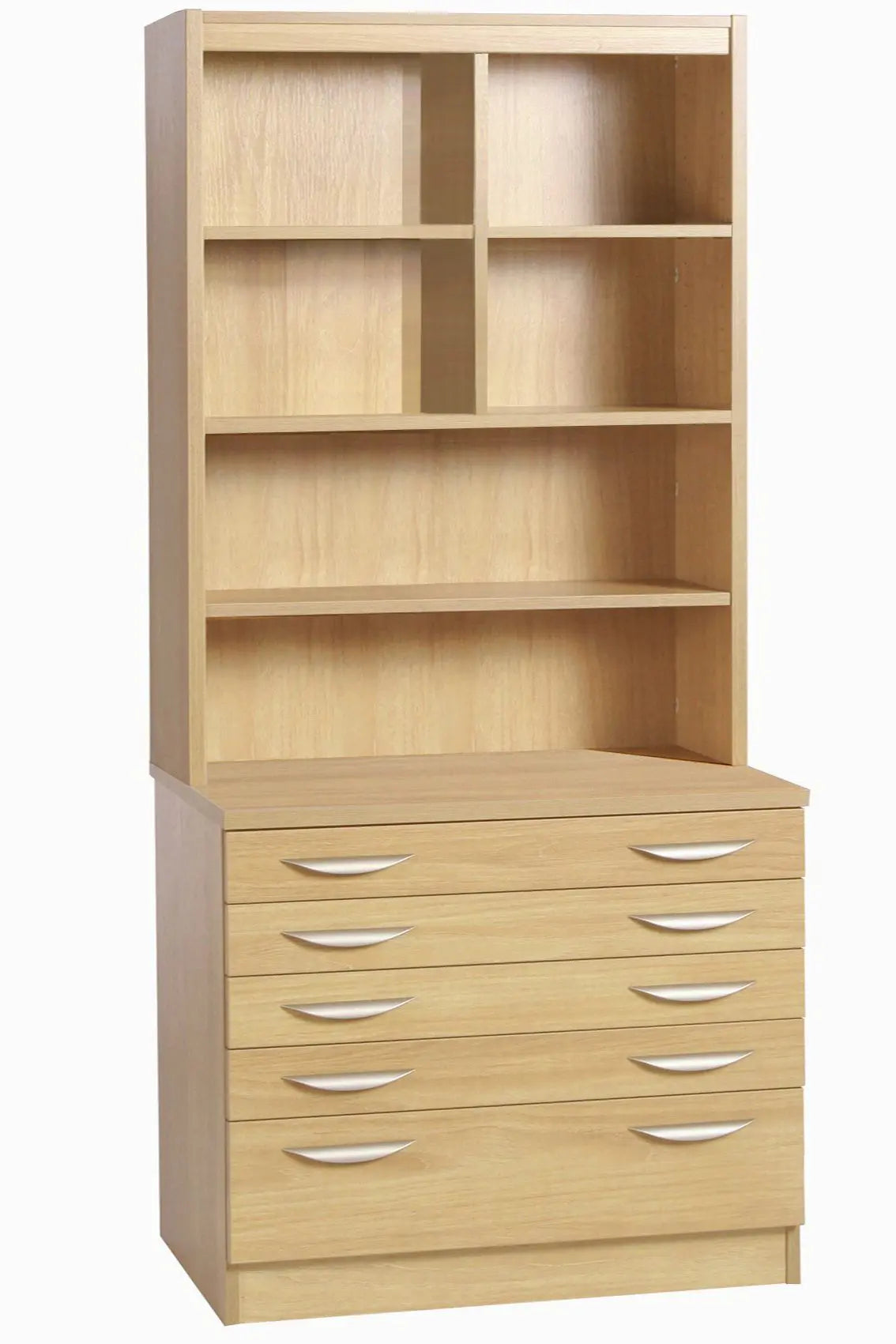 Home Office Desk Height 5 Drawer A2 Plain Chest with Deep Lower Drawer with Hutch Bookcase
