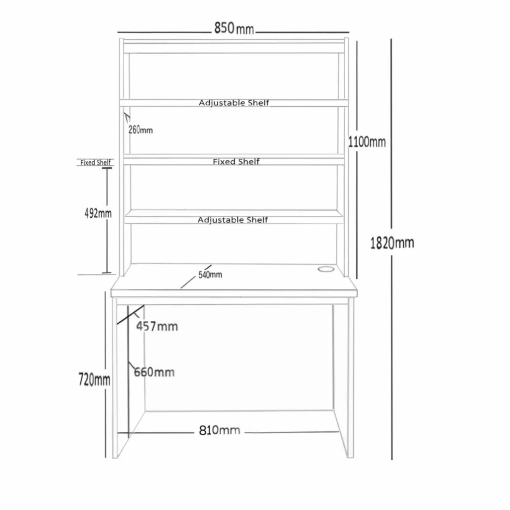 Home Office Desk Height Desk 85cm with Hutch Bookcase