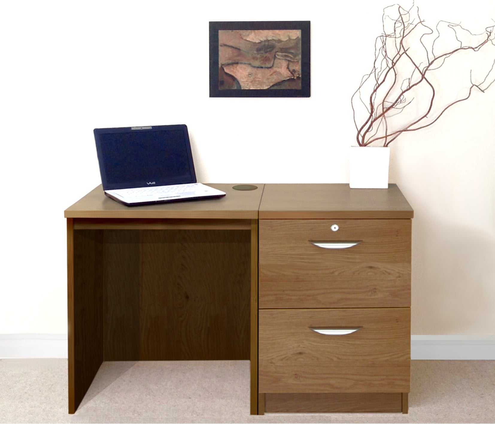 Transform your workspace with our sleek Home Office Desk, designed to fit seamlessly into any small recess or alcove. This intuitive styled office solution offers a practical work area, with the added benefit of a 2 drawer filing cabinet for maximizing space. Elevate your productivity and style with this exclusive addition to your home office.