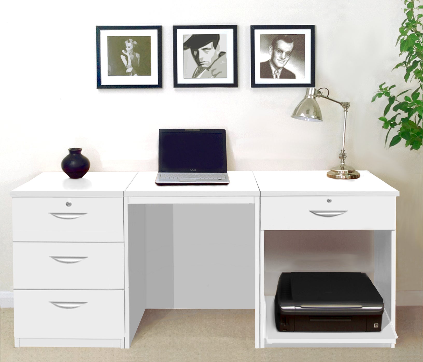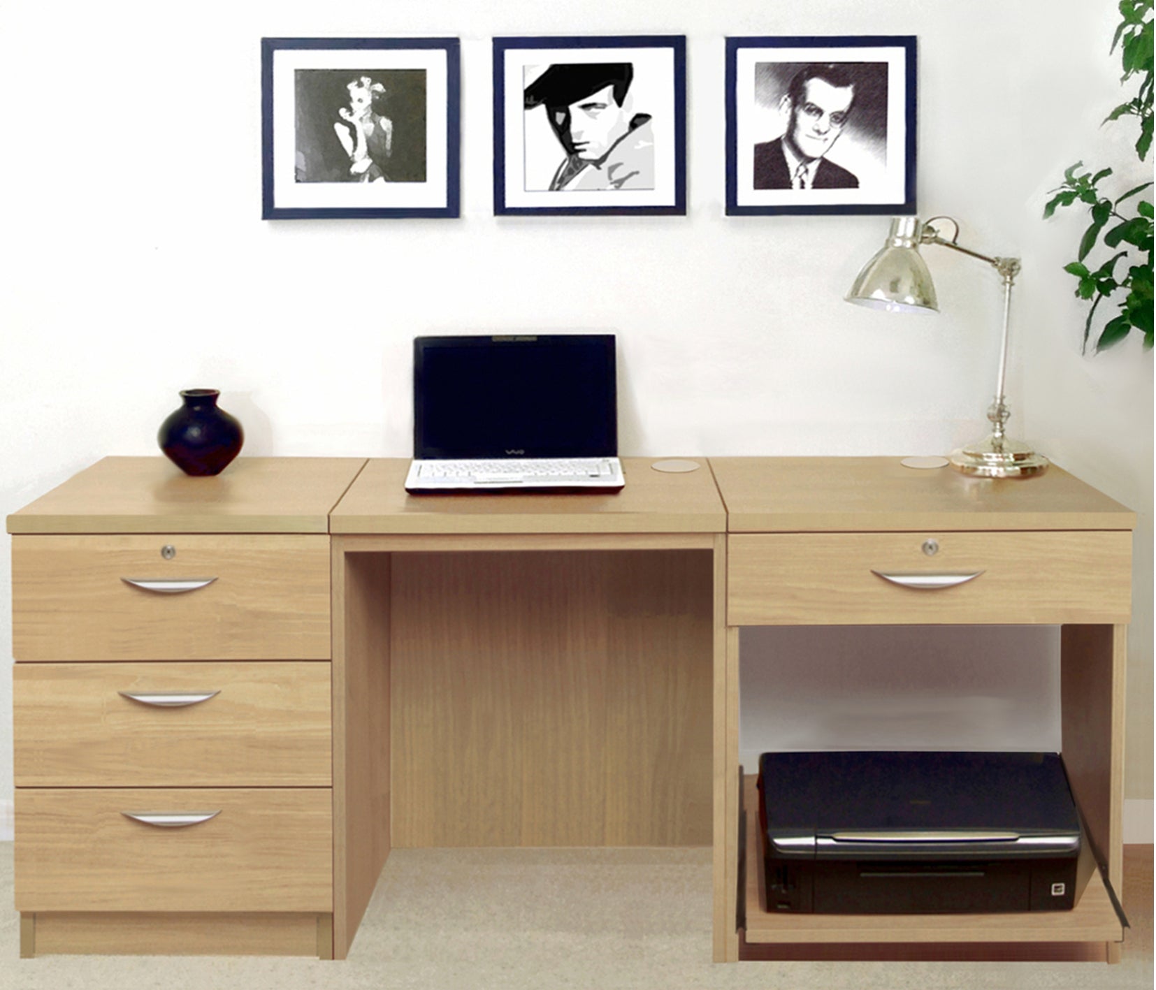 This fully functional home office desk comes complete with printer and drawer units, providing stylish storage solutions that will be an asset to any room. Effortlessly create a productive and organized work space with this practical and stylish addition to your home.