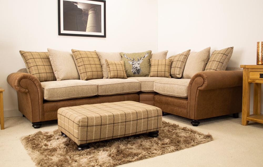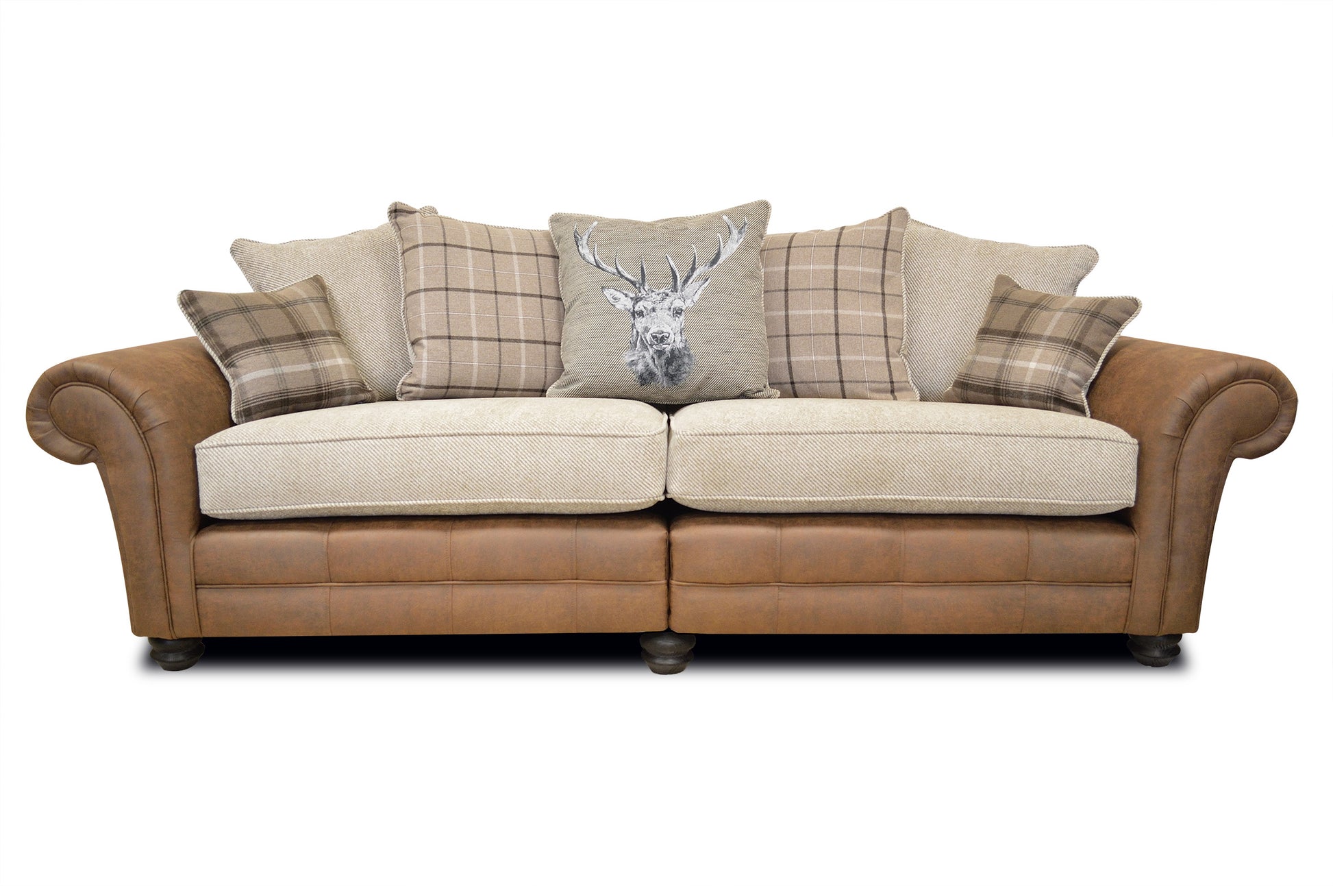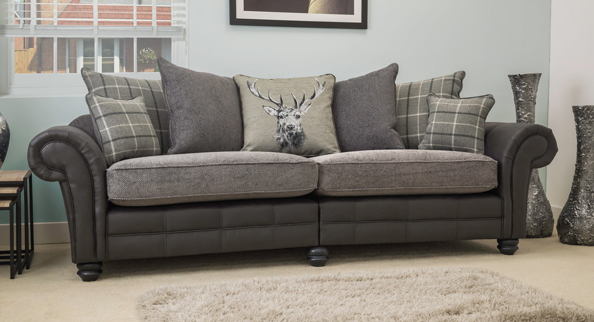 The Hugo sofa elevates luxury with its unique mix of fabrics and eye-catching quilting details. With classic scroll arms and turned legs, this sofa is the epitome of modern elegance. Add a touch of sophistication to any room with the Hugo. Available in Scatter Back or Pillowback