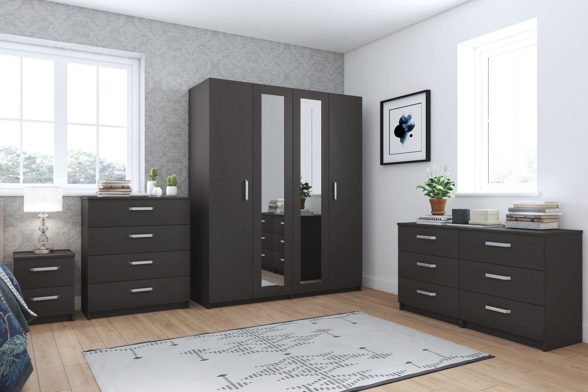 Introducing Lincon - the ultimate in minimalistic design with 4 beautiful colour options to choose from. Each piece features a high gloss slab design, polished chrome handles, and 8mm heavy duty drawer bases. Plus, select pieces include inset mirrors for added functionality. Linen accents on drawers and wardrobe backs add a touch of luxury.