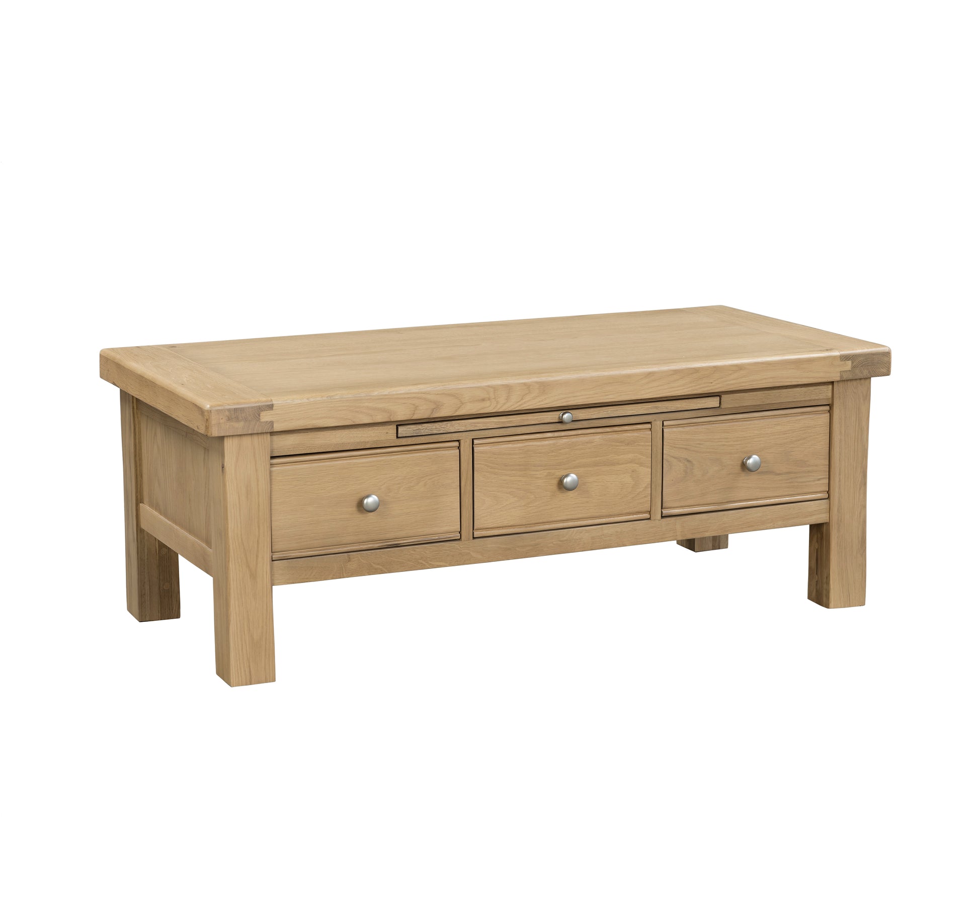 Logan offers versatile functionality and traditional charm with its thick chunky top design and Natural Finish White American Oak. Perfect for seamlessly integrating into any space, this piece brings both style and practicality.