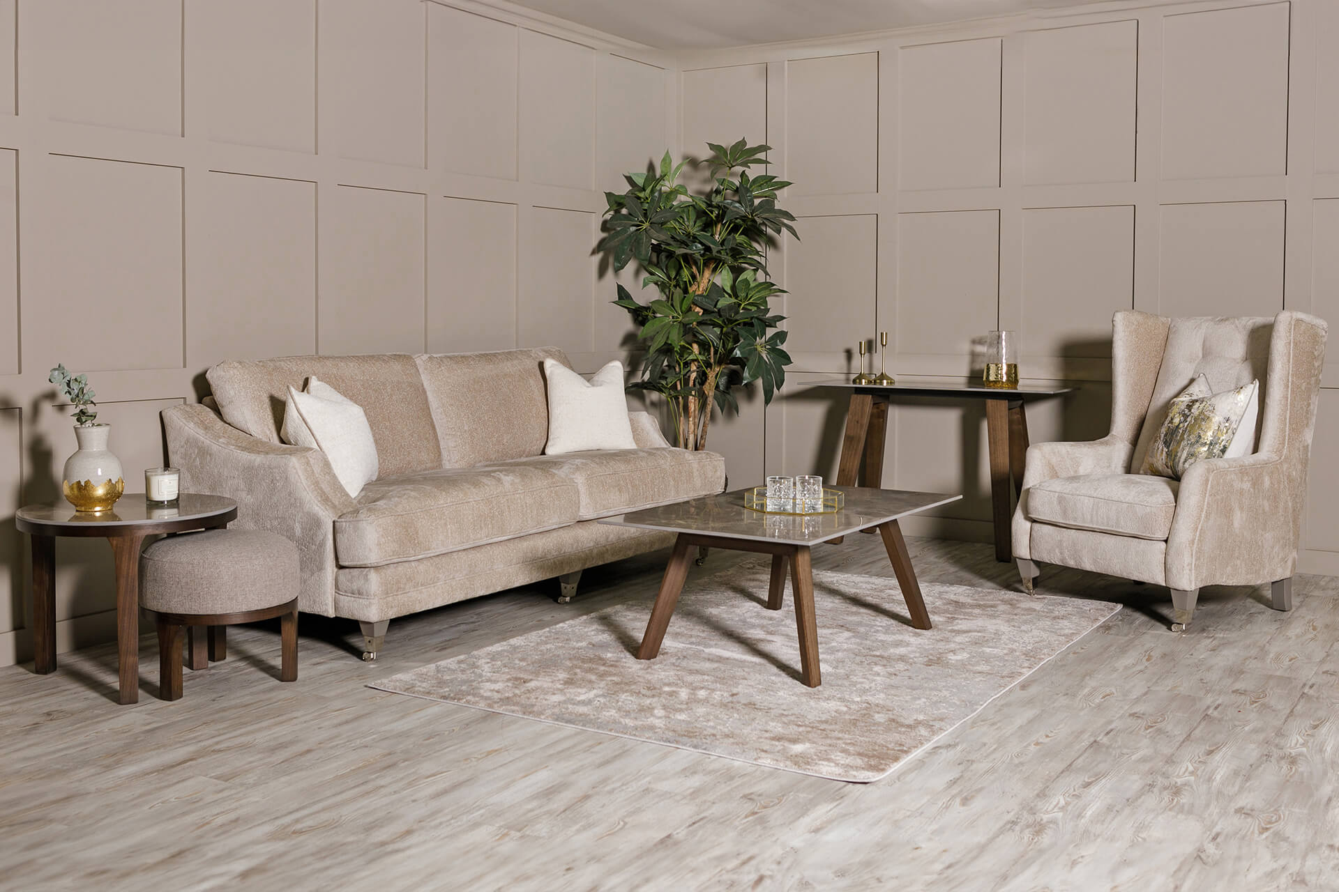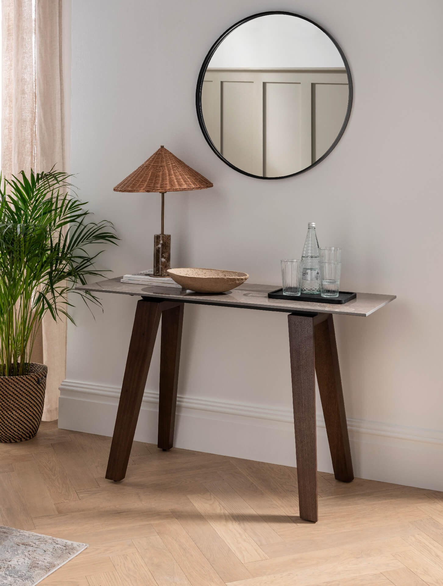 The Loki dining collection that combines modern design with practical functionality. Featuring a sintered stone tabletop and sideboard surfaces paired with walnut veneer on solid birch legs, it offers a sleek, contemporary aesthetic. The table includes a soft-touch draw leaf extension mechanism, allowing effortless expansion to accommodate additional guests. Ideal for modern kitchens and dining rooms, the Loki collection delivers both style and convenience. Explore the full dining and occasional range to complete your space.