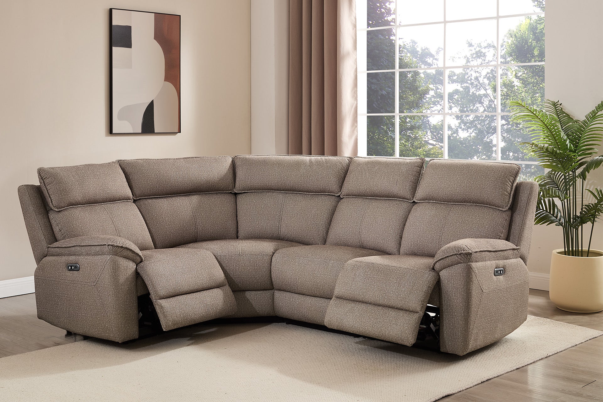 The Lomax seamlessly merges comfort with contemporary design. Its single-motor reclining mechanism delivers smooth, effortless adjustment for personalised relaxation. The neutral greige & latte upholstery complements modern interiors whilst maintaining timeless appeal. Integrated USB and USB-C charging ports keep your devices powered throughout the day, addressing the practical demands of connected living. This collection represents an intelligent investment for those seeking both functional comfort and sophisticated style.