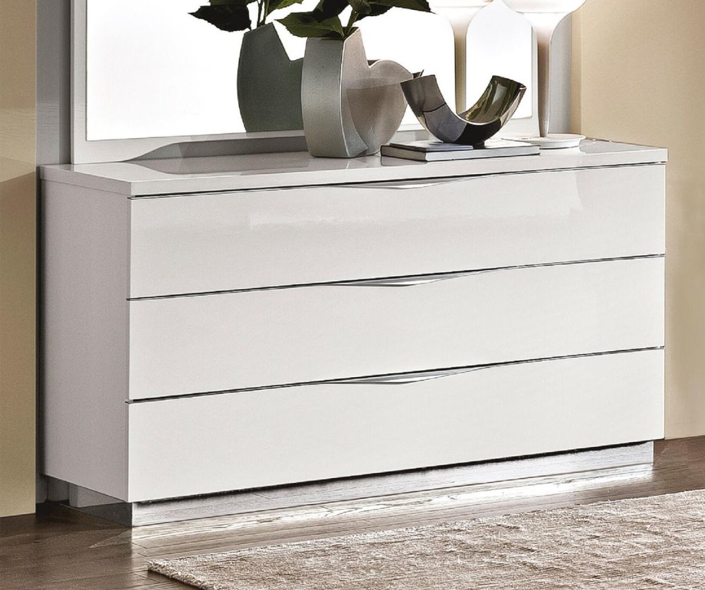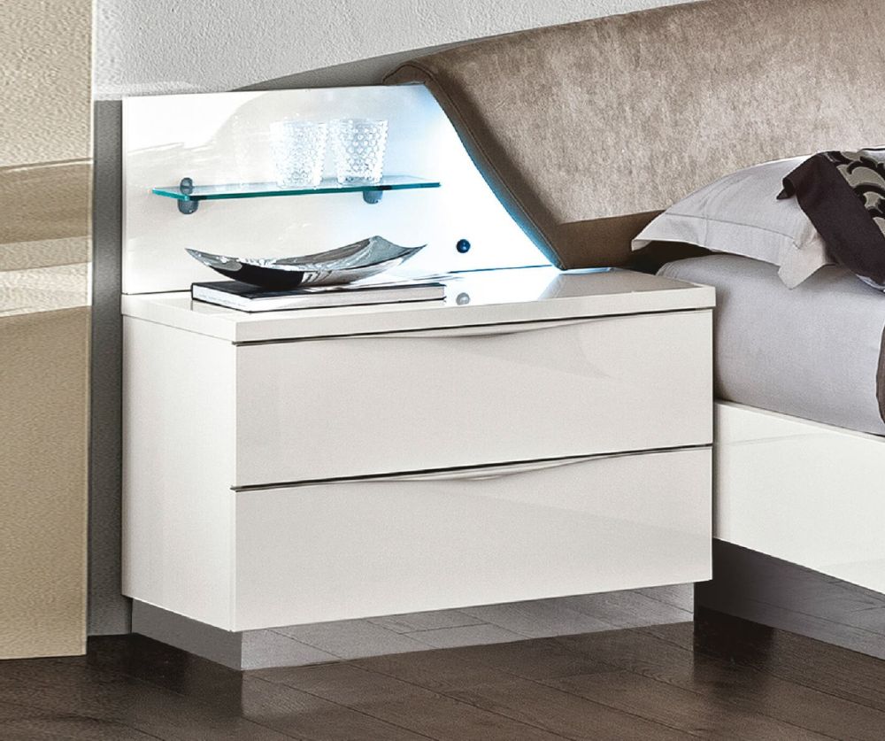 Introducing Luca 2 , a luxurious high gloss White collection from Italy. Its shining surfaces exude elegance and charm, while the wave-shaped chromed handles and LED-lit headboards add a touch of sophistication. With options for fantastic storage, this collection is perfect for those who appreciate the finer things in life.
