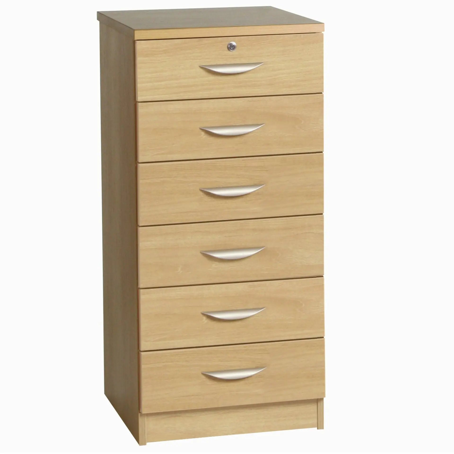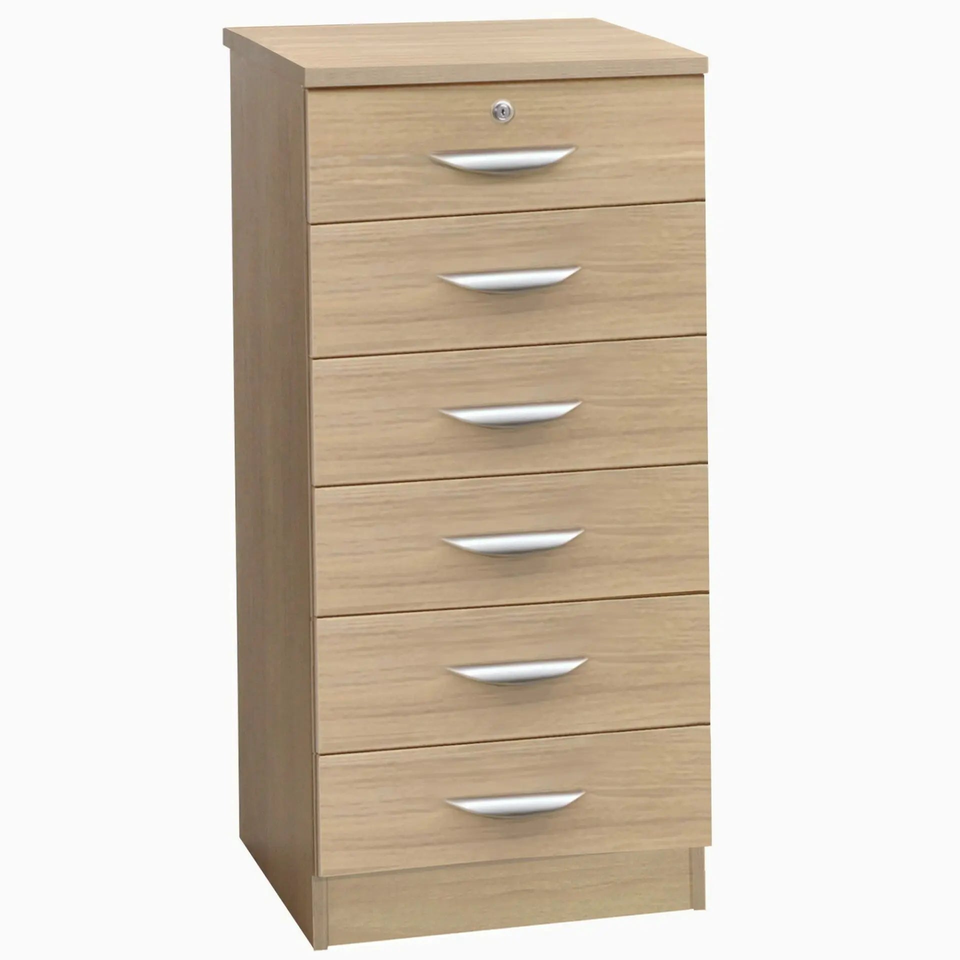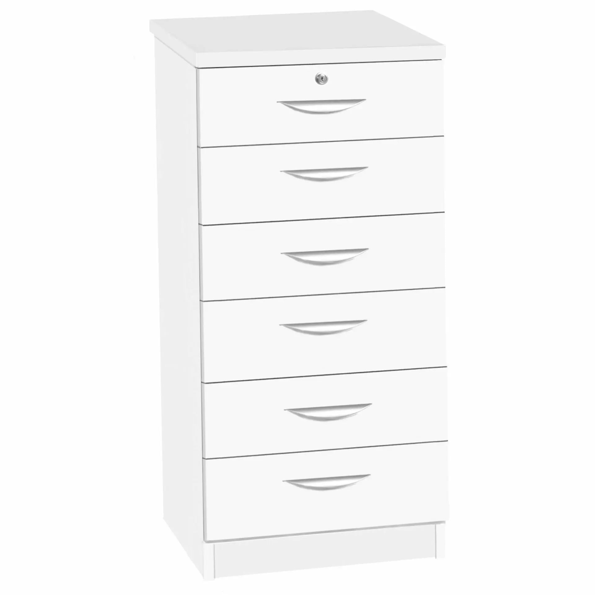 Maximize your storage space with our Mid Height 6 Drawer Unit! The versatile design is perfect for storing stationary, folders, paper, and ink cartridges. With smooth action metal runners and a sturdy base, it's great for heavier items. Plus, the top drawer comes with a lock for added security.