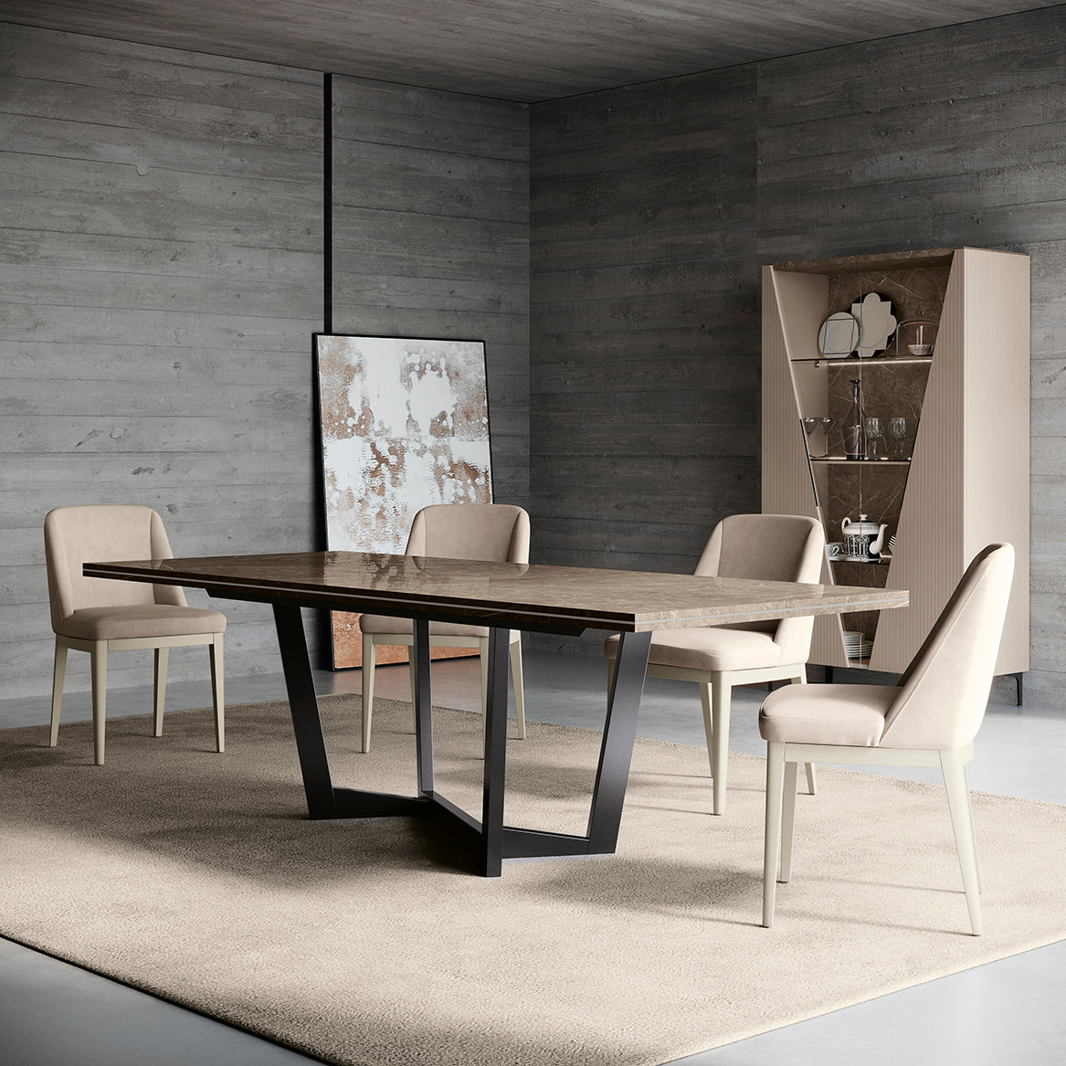Indulge in luxury with Milana, a modern Italian design that brings a refined and innovative touch to your living and dining space. Its balanced geometries and sleek lines create an exclusive and sophisticated ambiance, elevating your home to a whole new level.