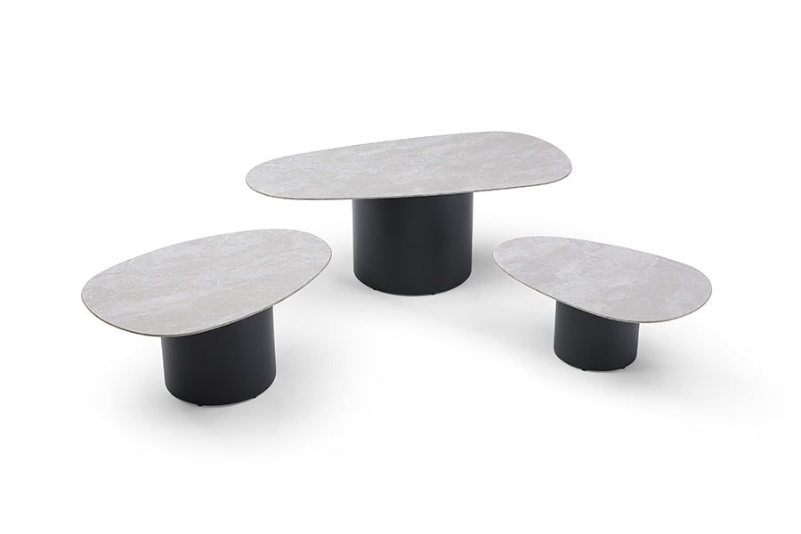 Elevate your space with Mimi, a stylish and versatile piece. The grey marble effect porcelain top adds a touch of sophistication while the black powder coated steel base provides durability. Create a modern and elegant look in any room, effortlessly.