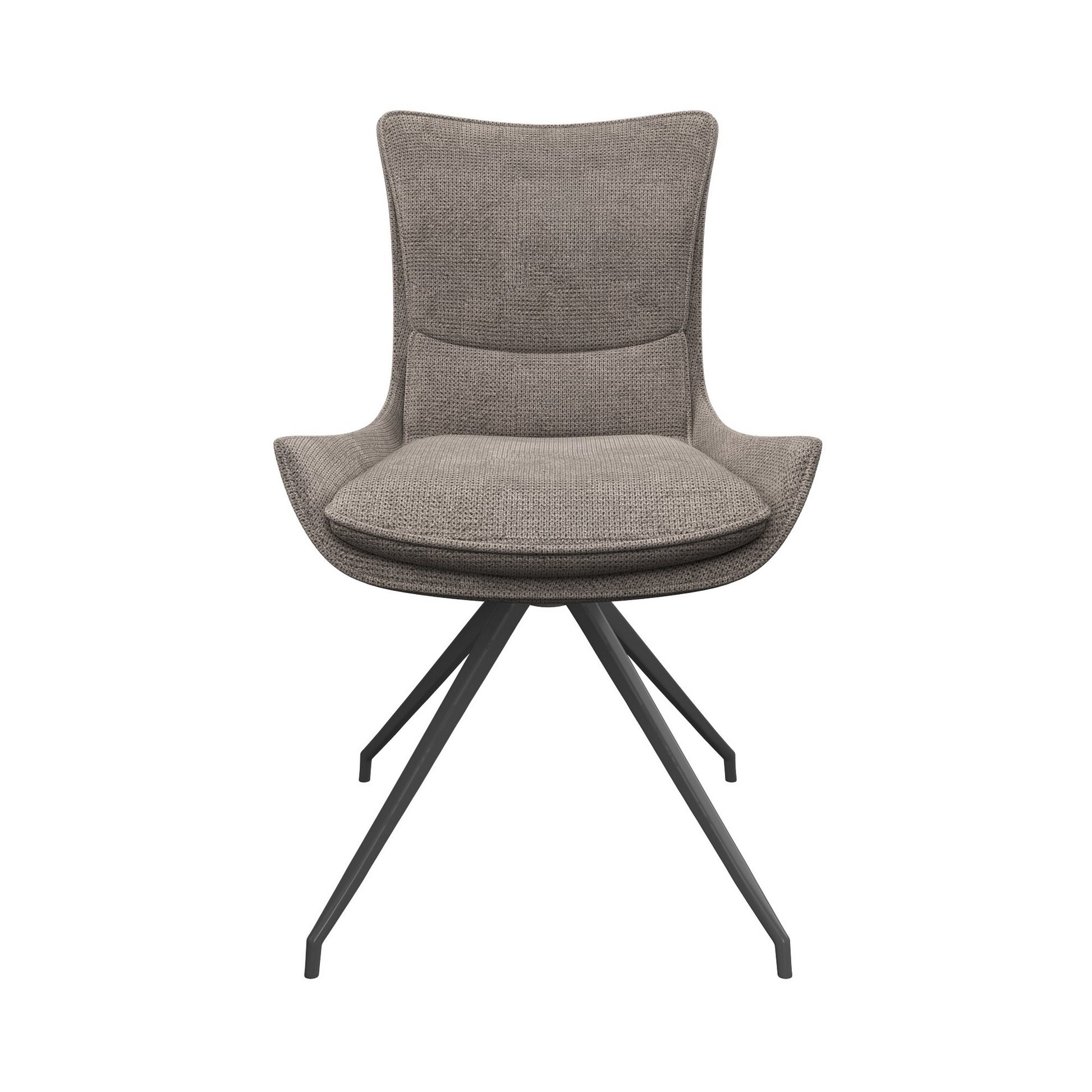 The Noir Swivel Dining Chair offers a dynamic and comfortable seating experience with its unique 360-degree rebound swivel mechanism and sumptuous fabric. Its contoured backrest and cushioned seat pad provide optimal comfort, while the sleek design and grey powder-coated spider legs add a touch of modern elegance.