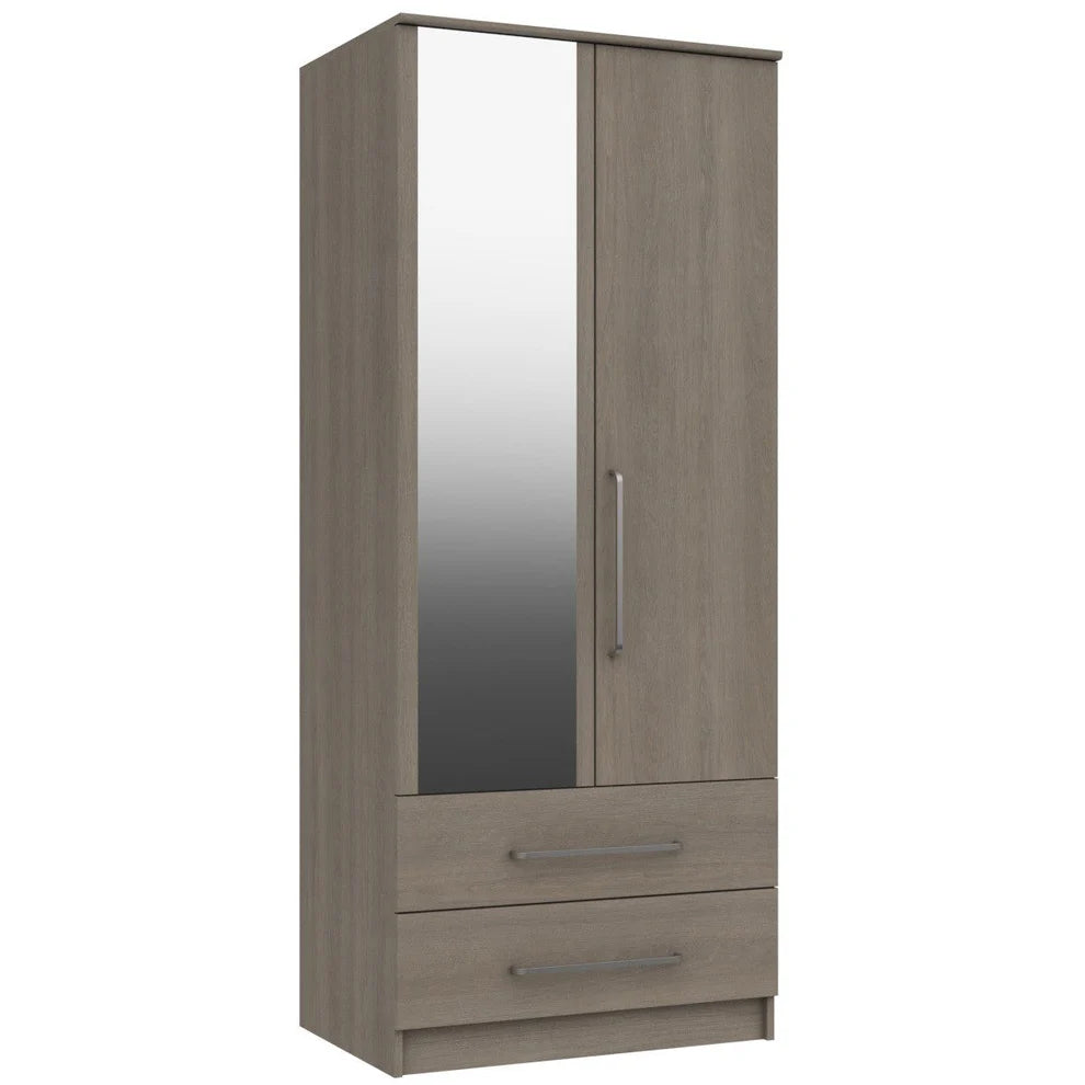 2 Door Combi Wardrobe With Mirror - W76cm x H184.5cm x D51.7cm
