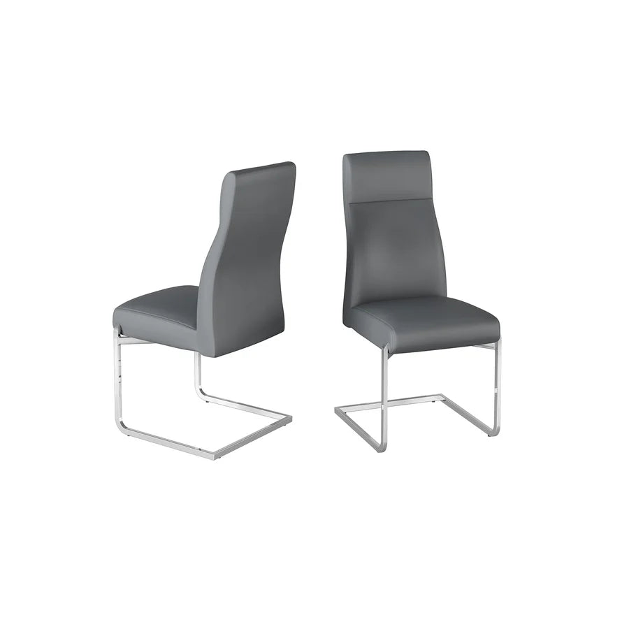The Perla Dining Chair boasts sleek grandeur and customizable options with its Faux Leather and chrome legs. Its super-dense cushioned seat pad promises exceptional comfort, while the cantilever leg frame adds sophistication to your dining space. Available in Black, White, Taupe, and Grey.