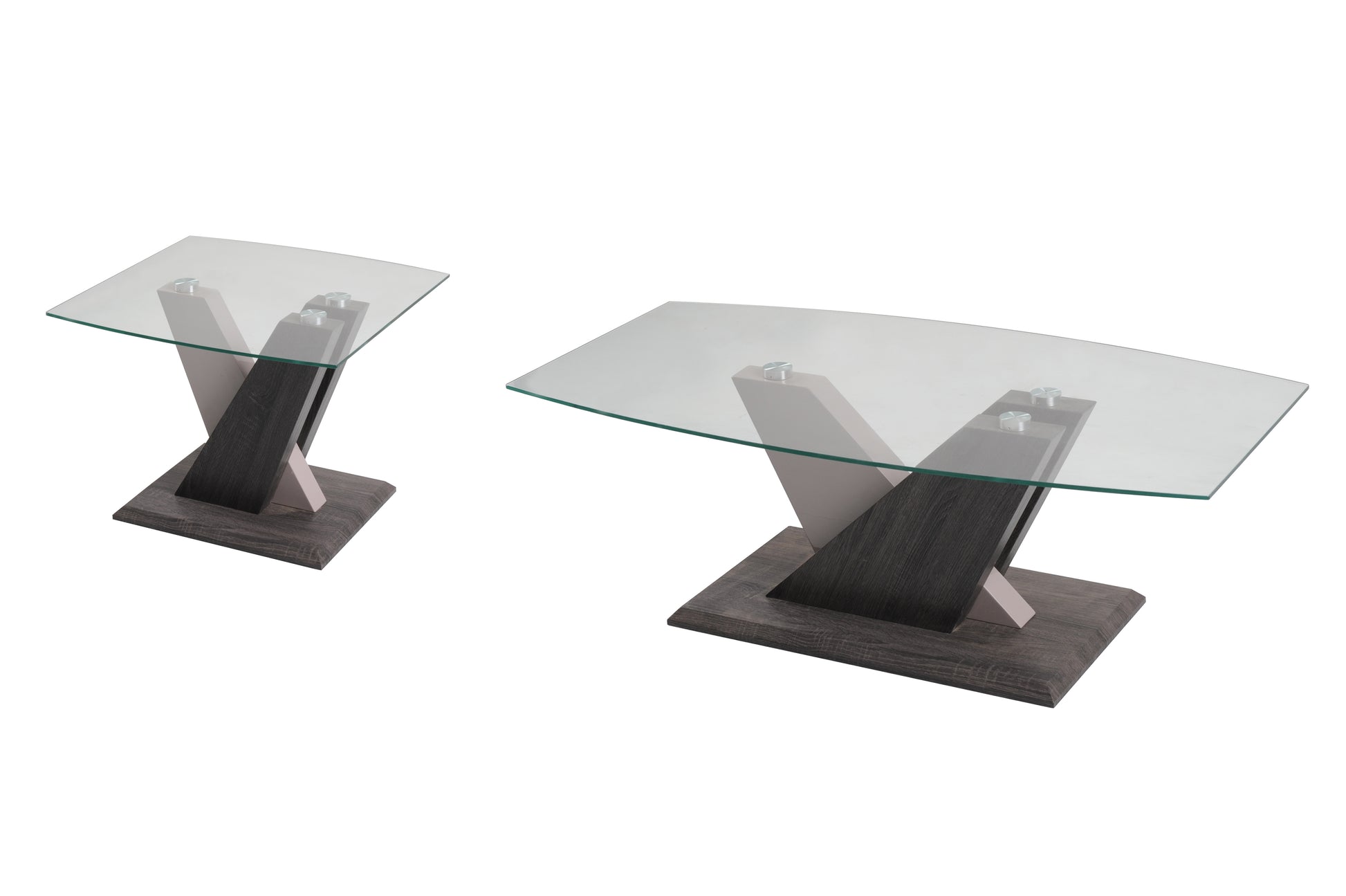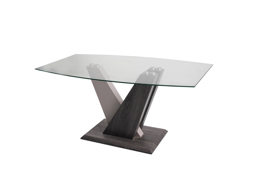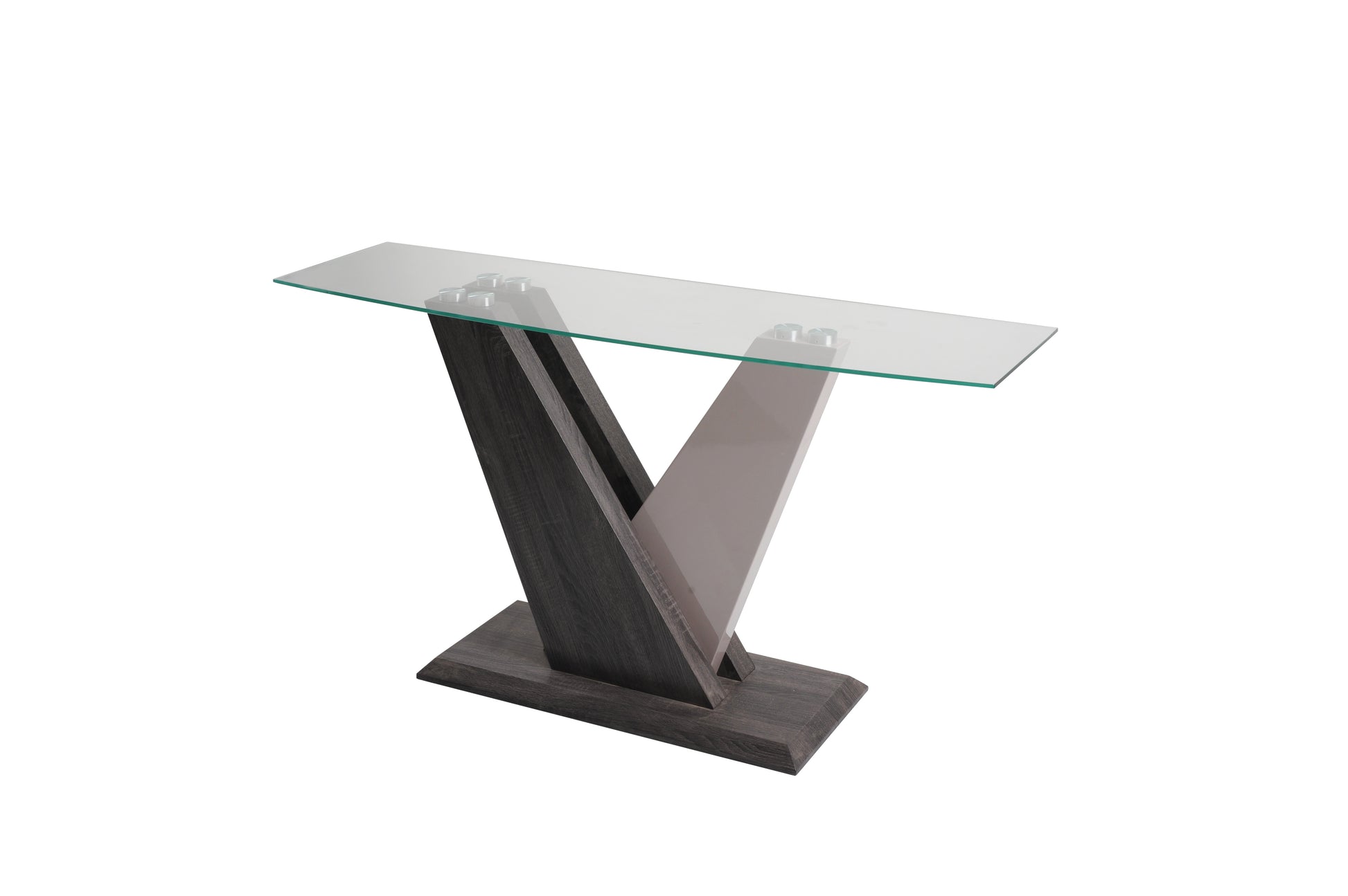 Introducing Zenith - the perfect blend of luxury and modernity. The Zenith Collection features a sleek and sophisticated design, with its Dark Grey Wood finish, champagne high gloss accents, and clear glass top. Elevate your space with Zenith and add a touch of elegance to any room.